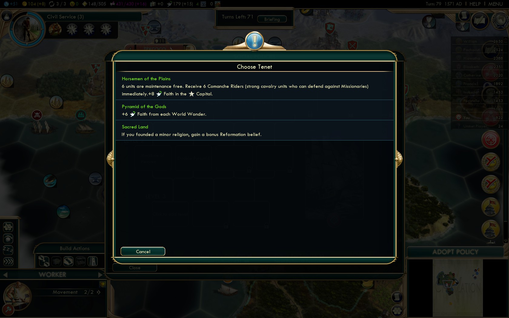 Failed attempt #2: Playing the Aztecs because they generate Faith from combat