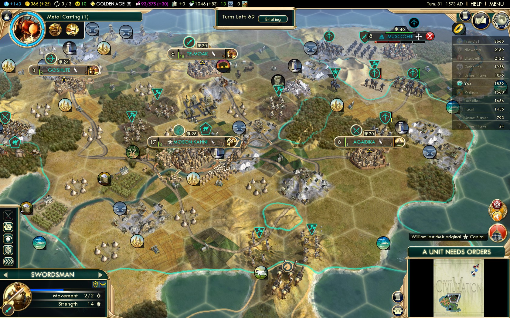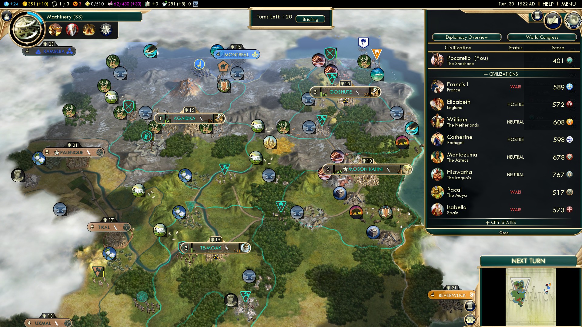 Native American Strategy Fail #4: Shoshone, same map, one more city