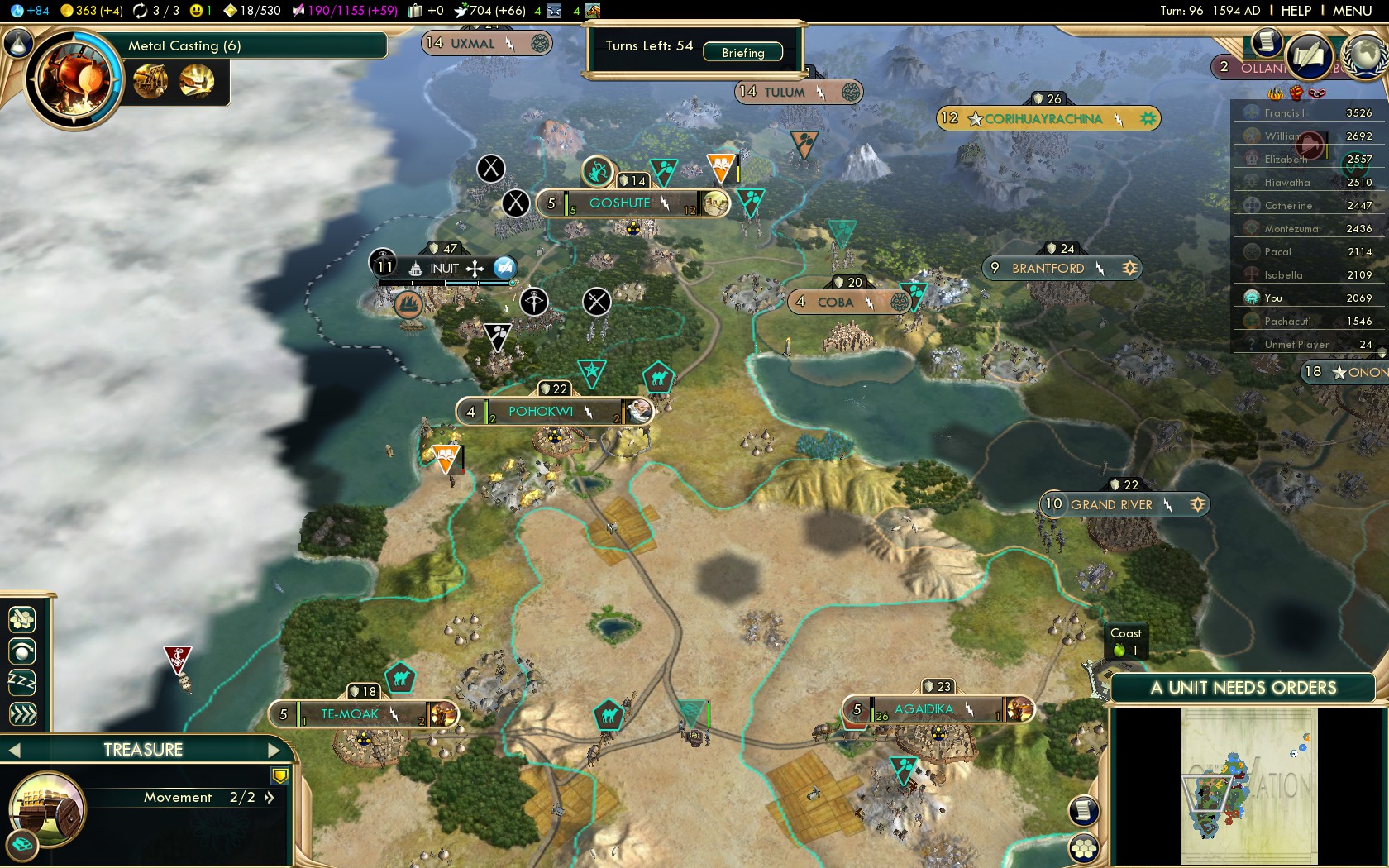 How much resistance do the other Native American AI players pose? If they’re lost quite early — not only will the Europeans by stronger, but they will also come for you earlier.
