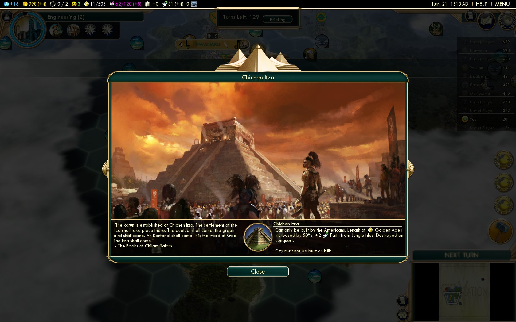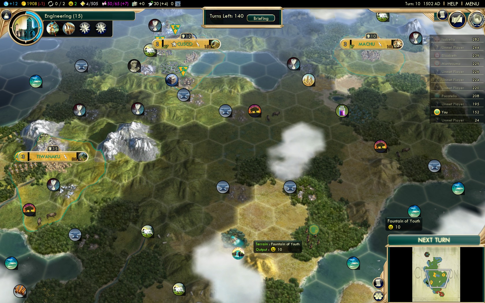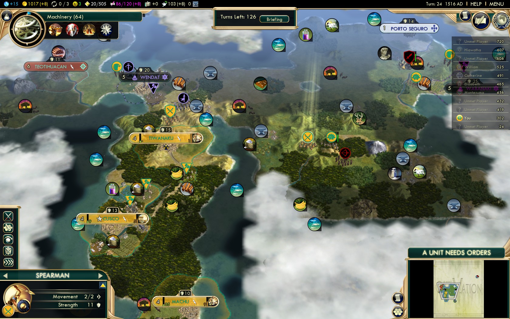 From here on this guide follows the best practices of all Native American civilizations. Of course on this level the strategies that work on Deity make for overwhelming dominance on Settler!