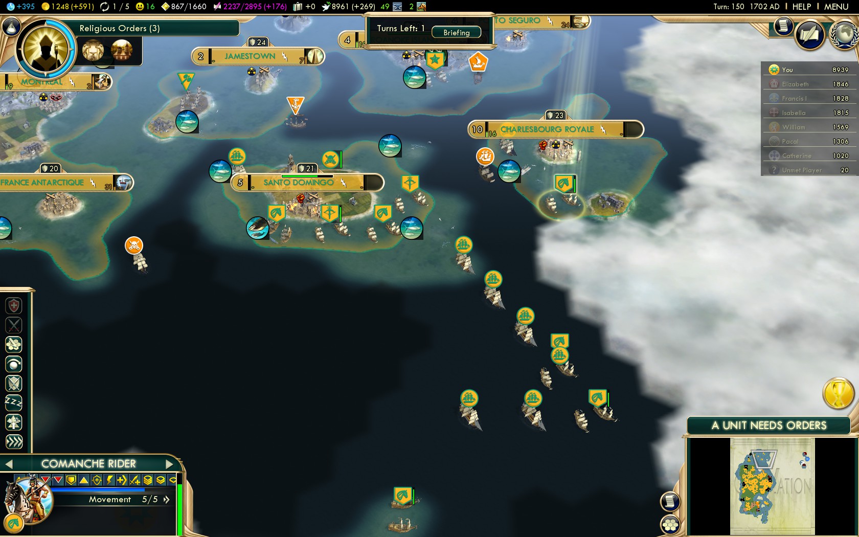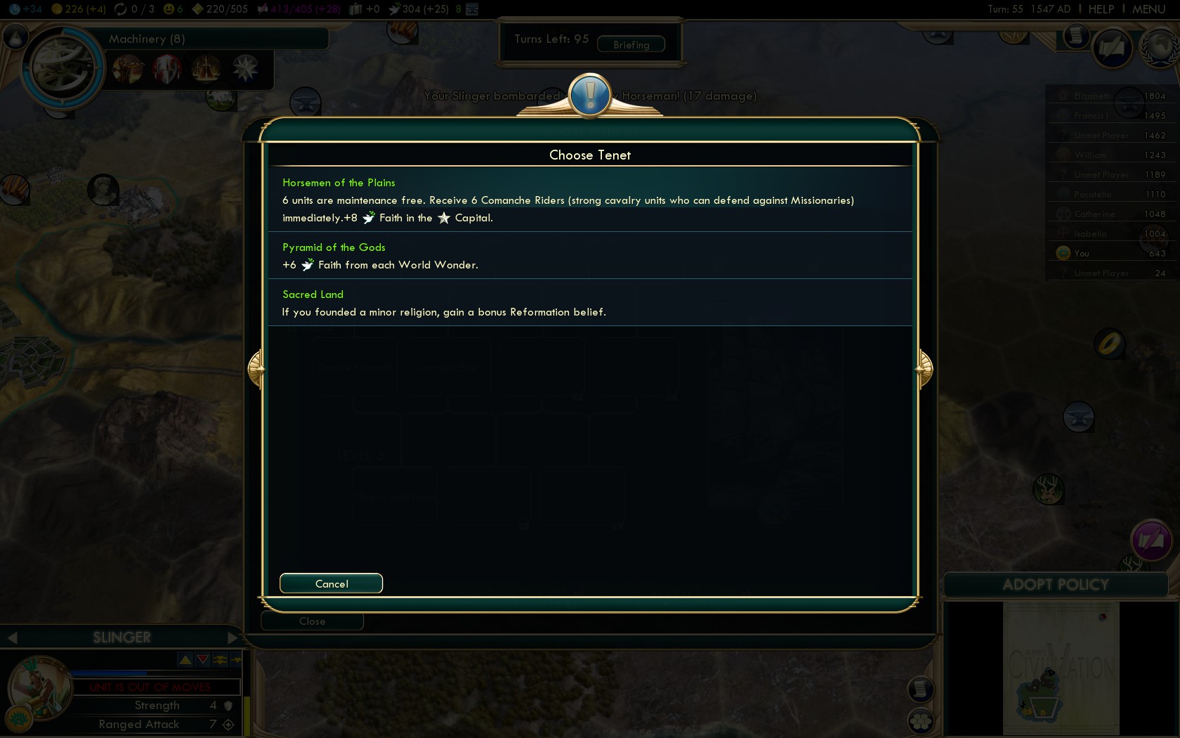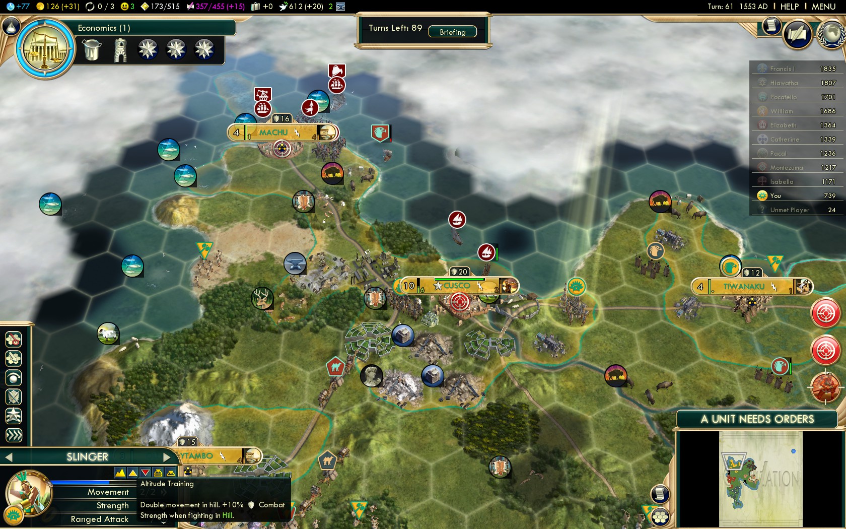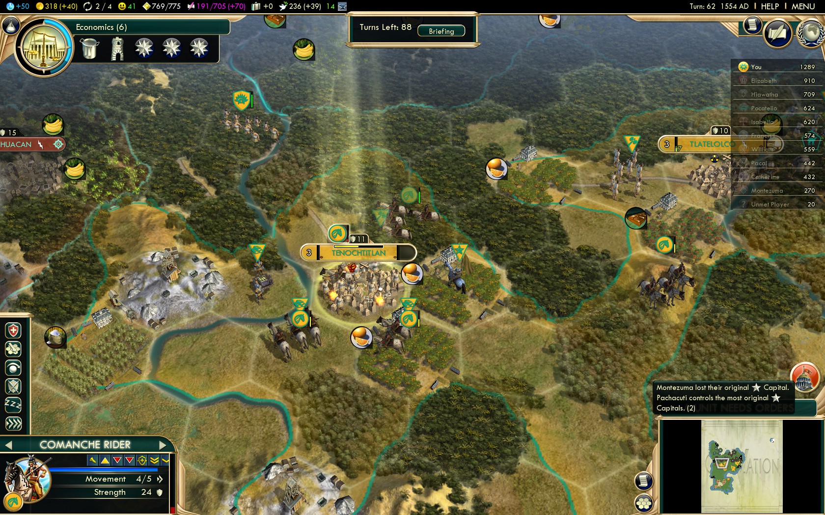 From here on this guide follows the best practices of all Native American civilizations. Of course on this level the strategies that work on Deity make for overwhelming dominance on Settler!