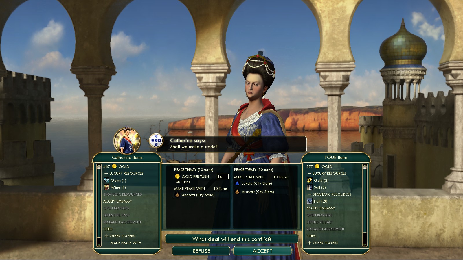Over the course of the game I came to overthink my advice regarding coastal cities: Maybe a capital by the coast is good. Gave me some early trade routes with the Europeans in which boosted my science income by 100%…