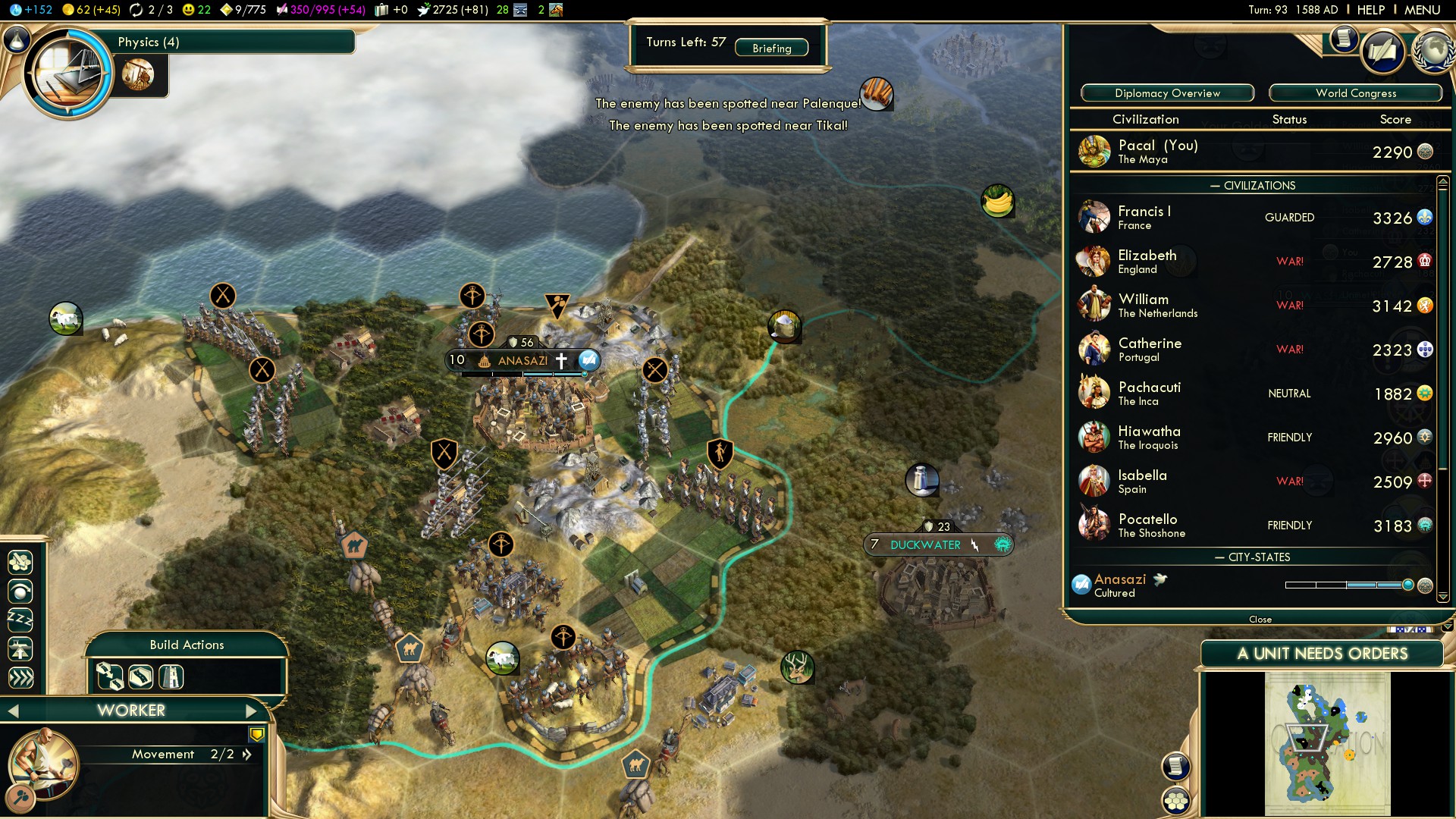Playing Conquest of the New World as the Maya on Deity difficulty is even more tricky than other Native civilizations. That is due to the weak unique traits, particularly on the military side.