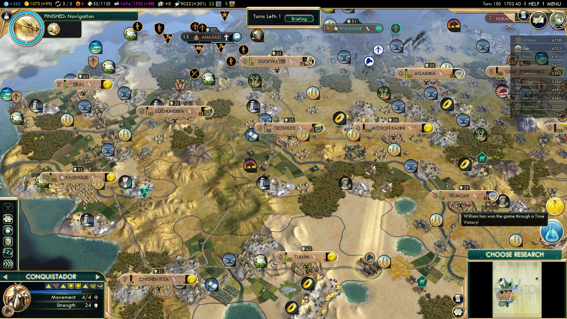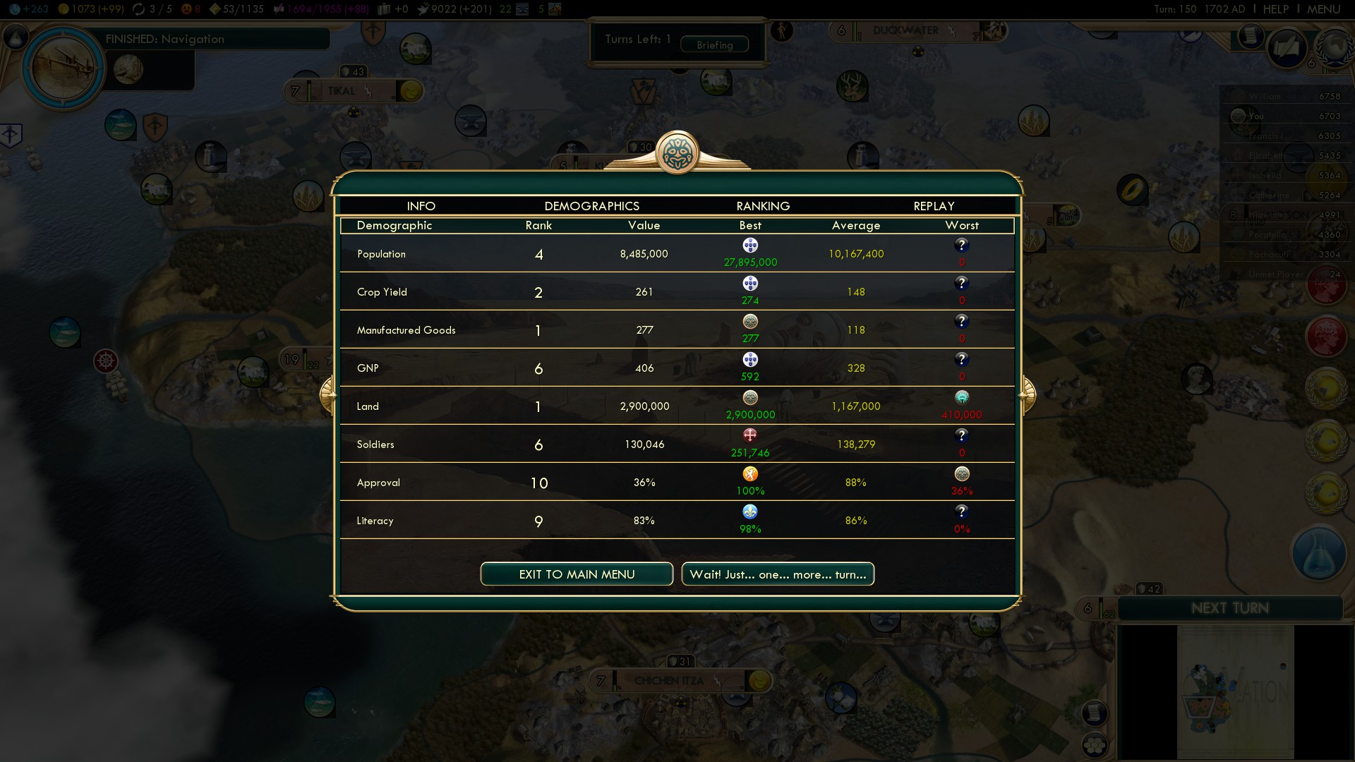 Winning the game playing Maya on Deity