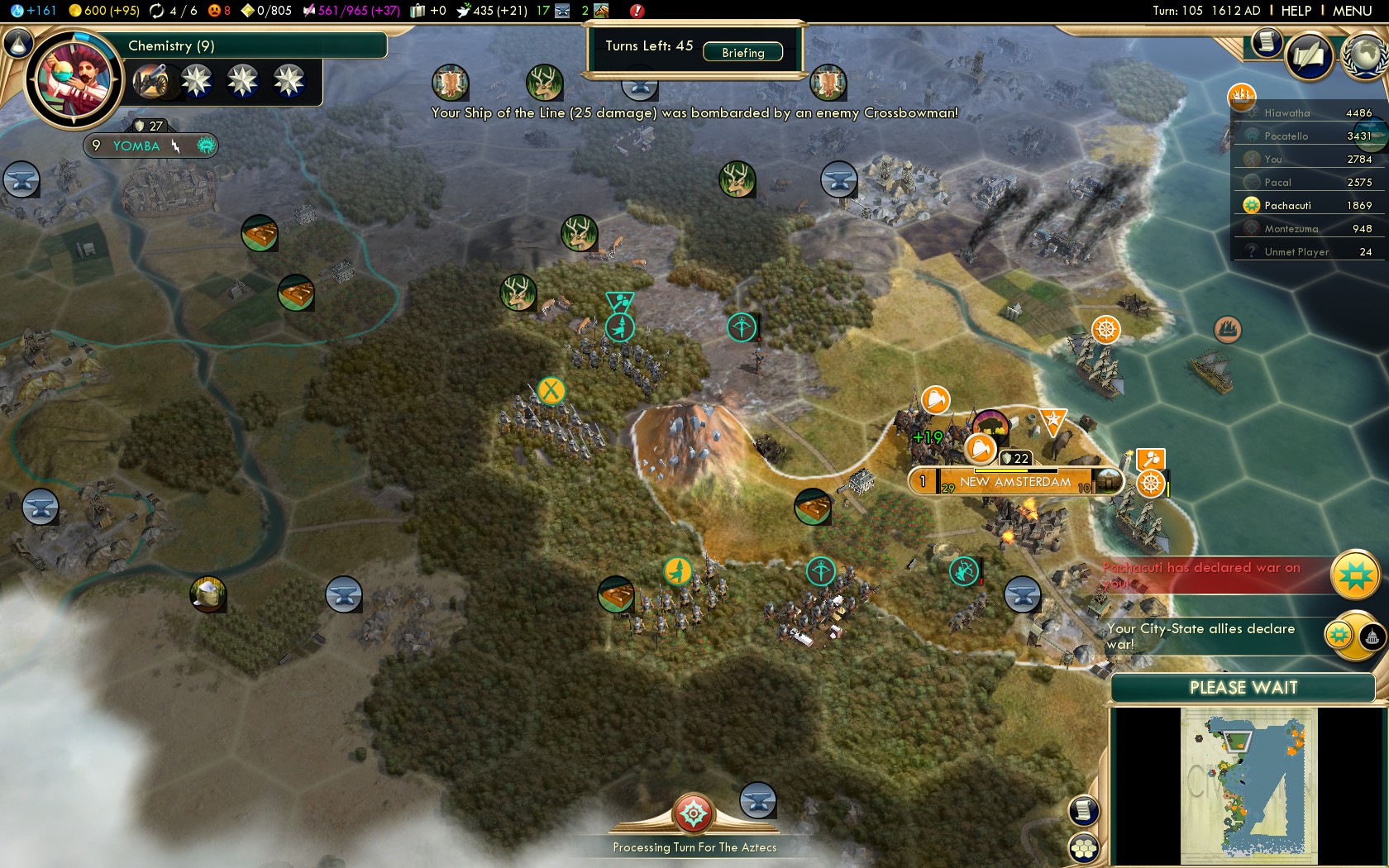 - Turn 63 War with Portugal (Lisbon: Turn 65)