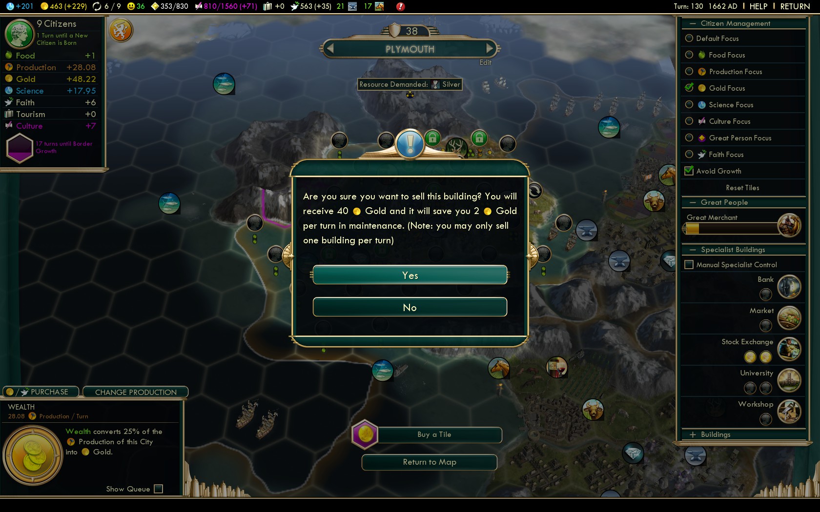 | 7th SP – Naval Tradition (~ Turn 95) +1 🙂 for each Harbor, Seaport, Lighthouse | ||