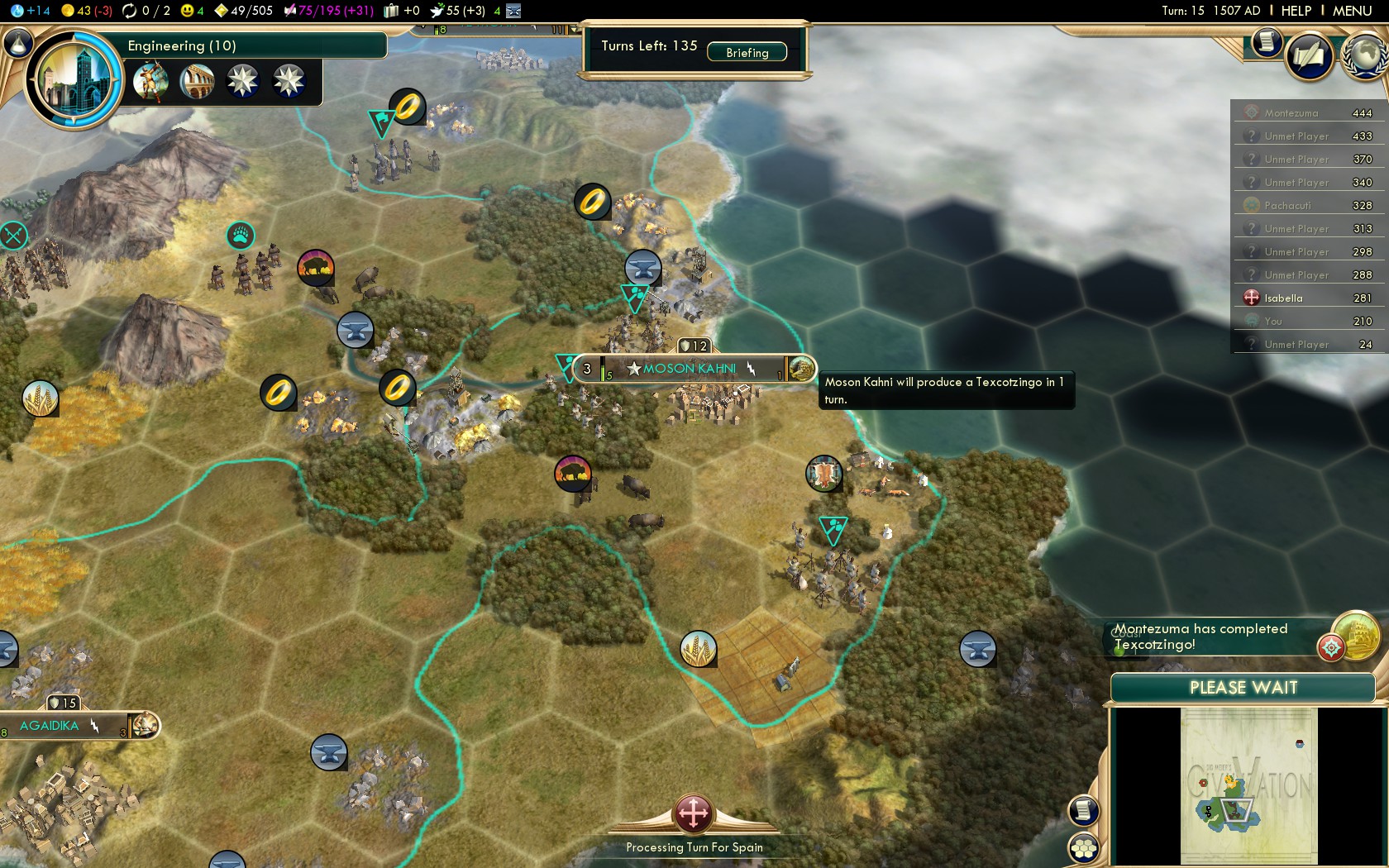 Also with all the hills i managed to built texcotzingo without much problem. And machu picchu too because no one else have territories near mountain.