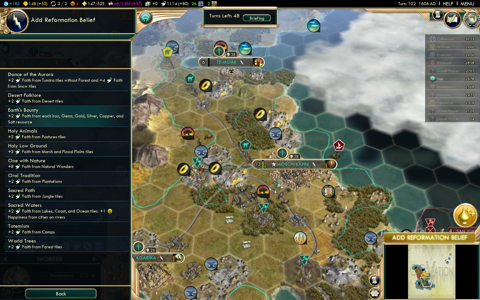 - Having a constant Faith income by killing Aztec units (from the Pantheon Belief you chose in turn 2)