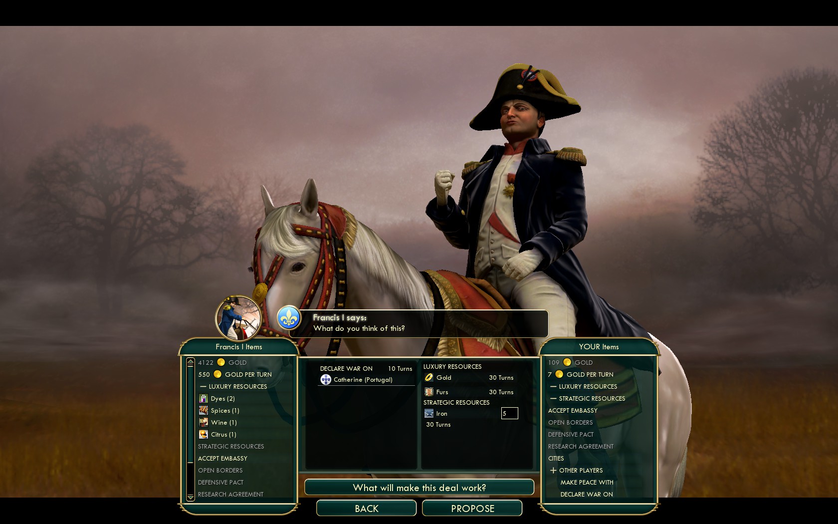 Even as my Comanche Riders (turn 41!) started heading towards the Aztecs, I had already denounced them, putting me on better relationships with the Europeans. (Brown nosing really doesn’t hurt here, as long as they then focus on warring other nations…)