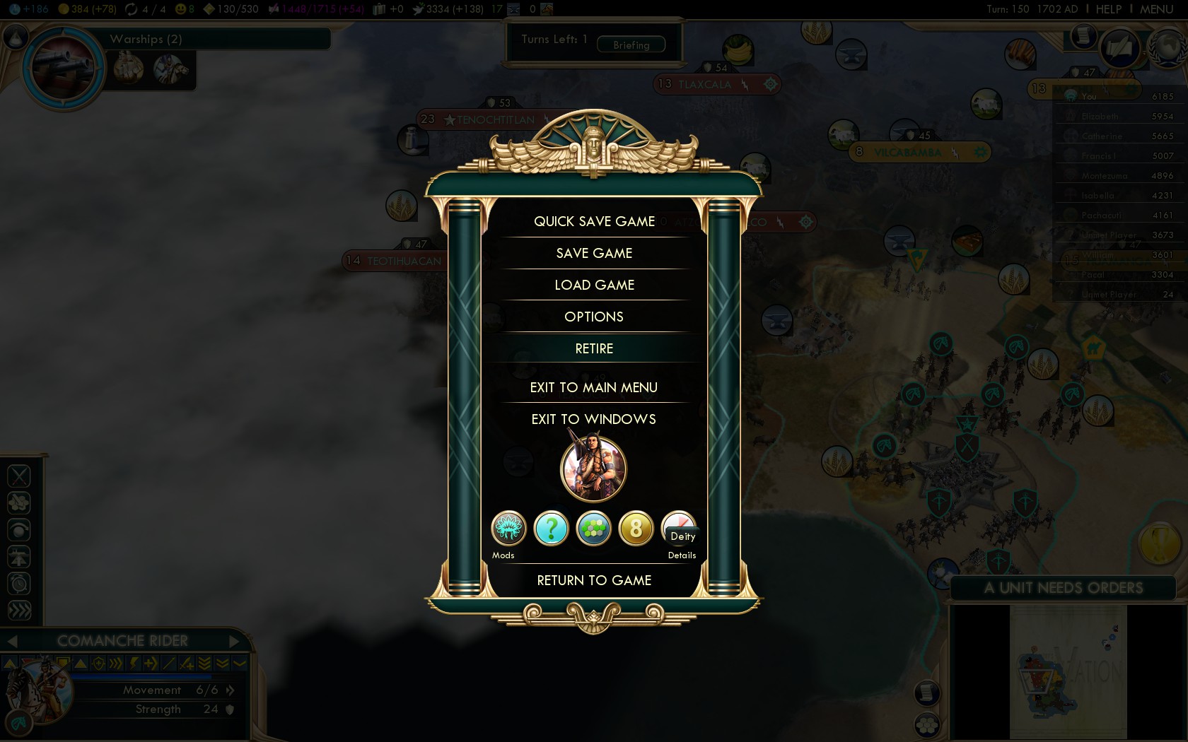 Playing the Conquest of the New World Scenario as one of the Native American civilizations on Deity difficulty is the hardest things I’ve tried in this game since going for the Praise the Victories Steam Achievement in the Scramble for Africa.