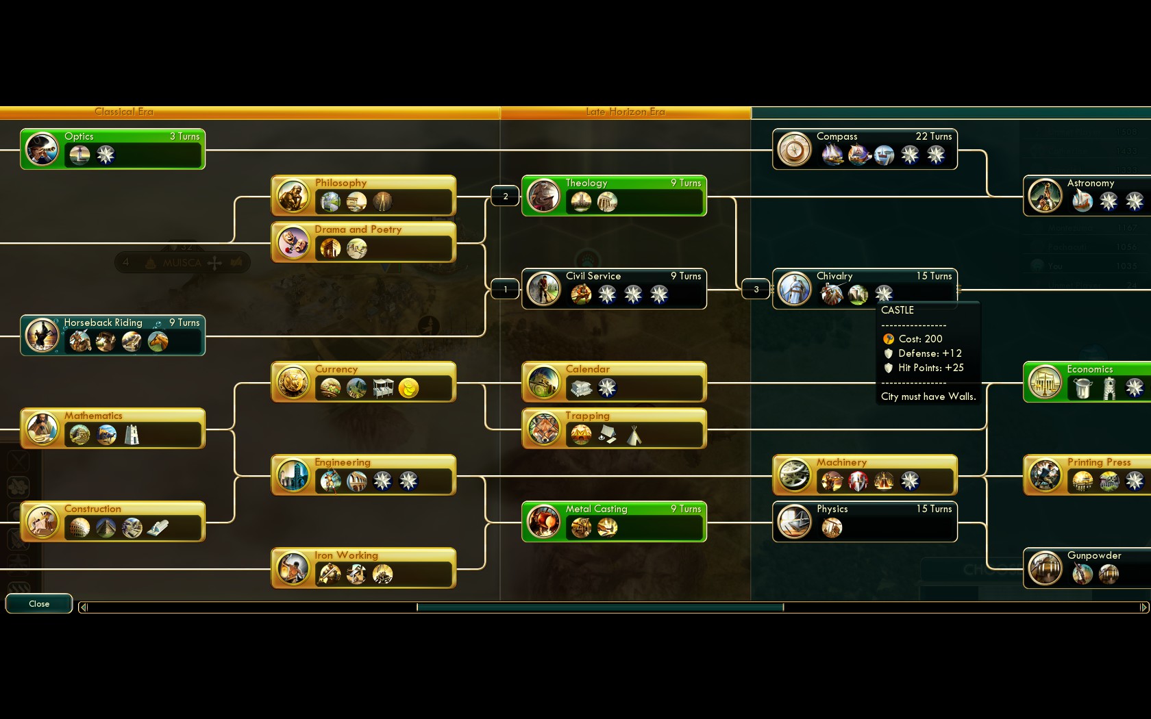 The primary goal of Research is to build units able to defend against the Europeans. I usually aim for Crossbowmen first, so it’s