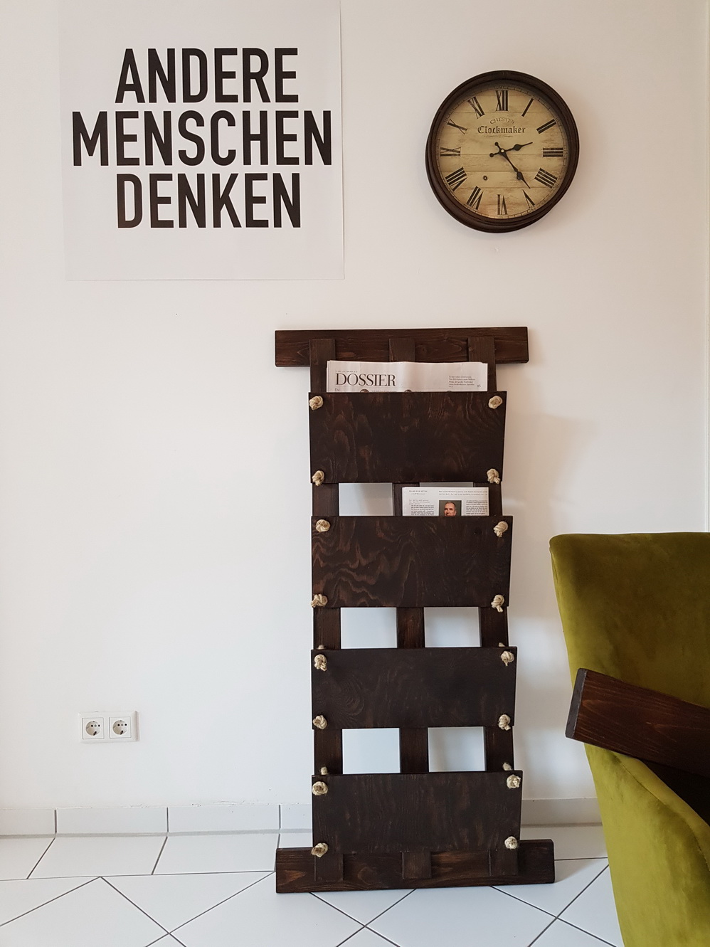 We’ve had the problem of having shitloads of newspapers piling up on our kitchen table. The underlying problem was that within those piles nobody could tell: What have I read and what do I still want to read. We were desperate for some way to organize our reading setup. What better reason to DIY (or rather do it ourselves)? Did anyone say Newspaper Rack?