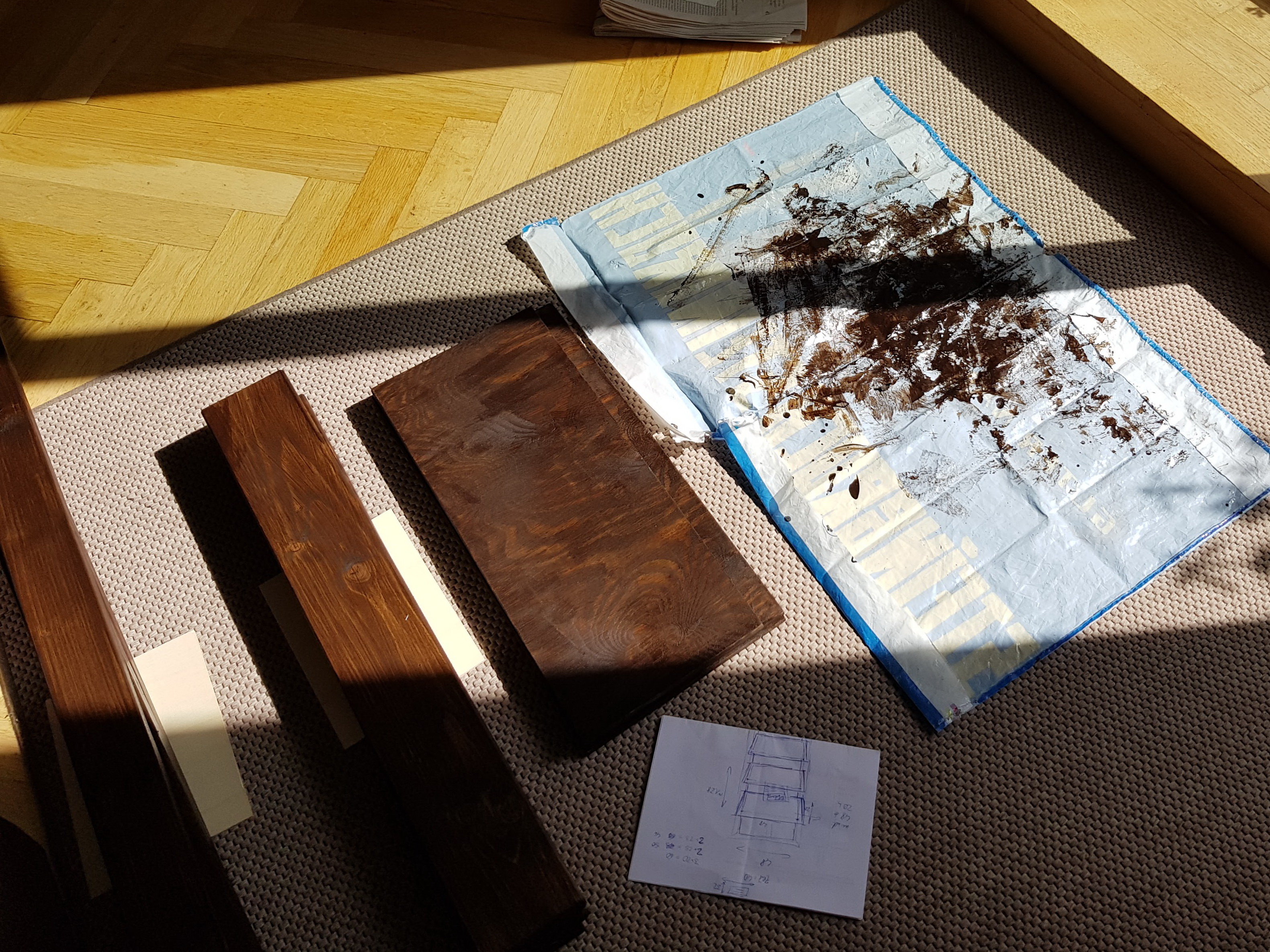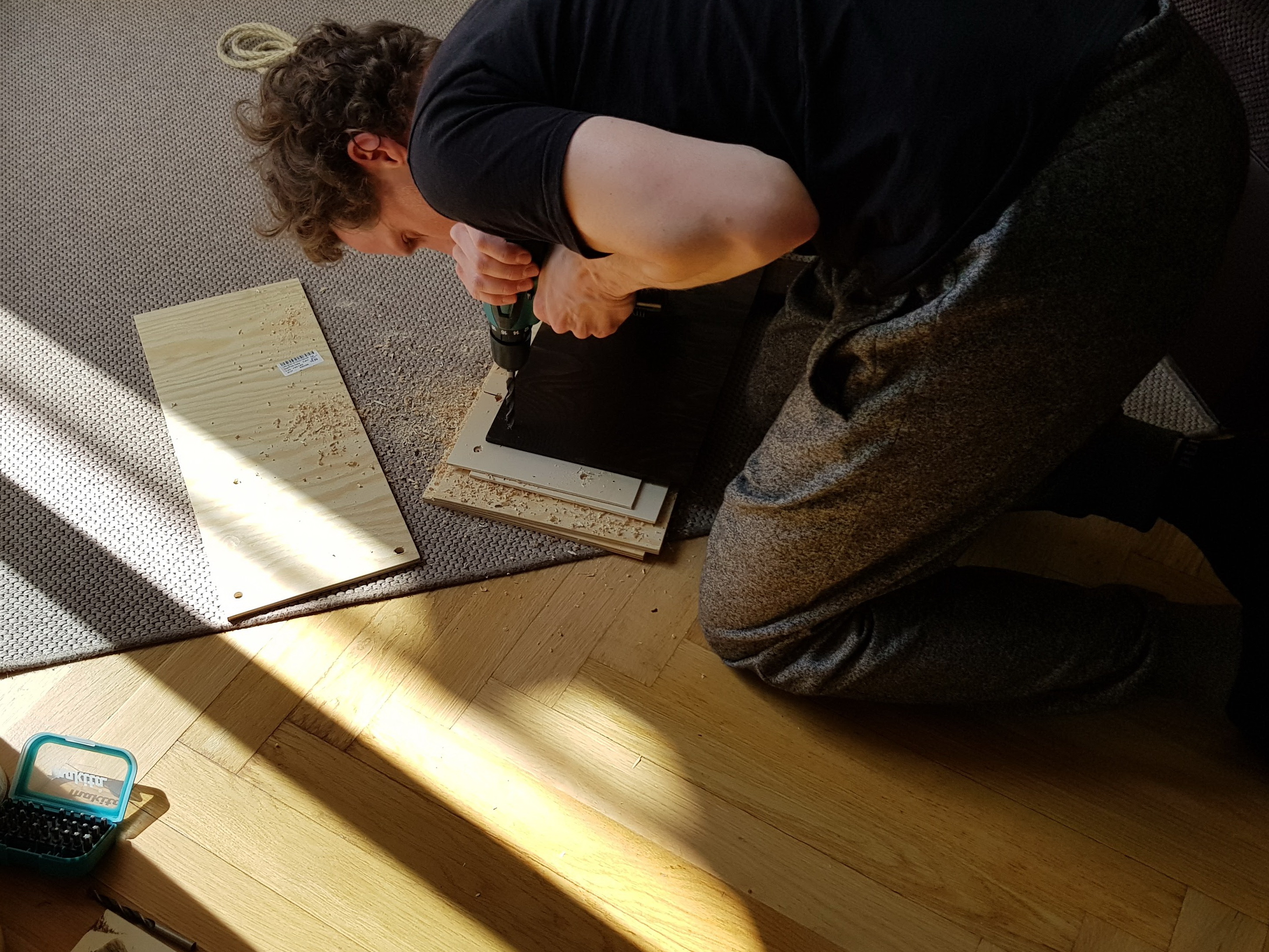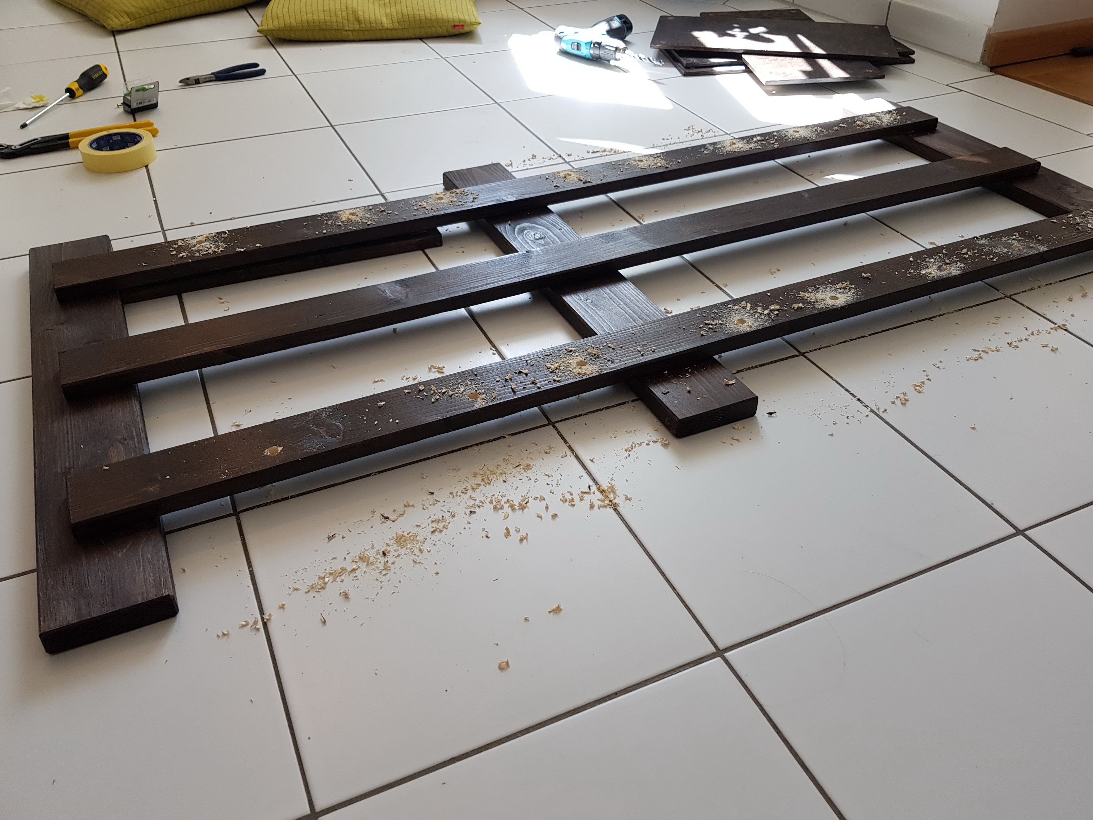 - Varnish the boards (It’s a two-partners-job if you want to be quick. While one finishes the first boards smoothening, the second partner starts varnishing )- Wait for ooone long night for everything to dry
