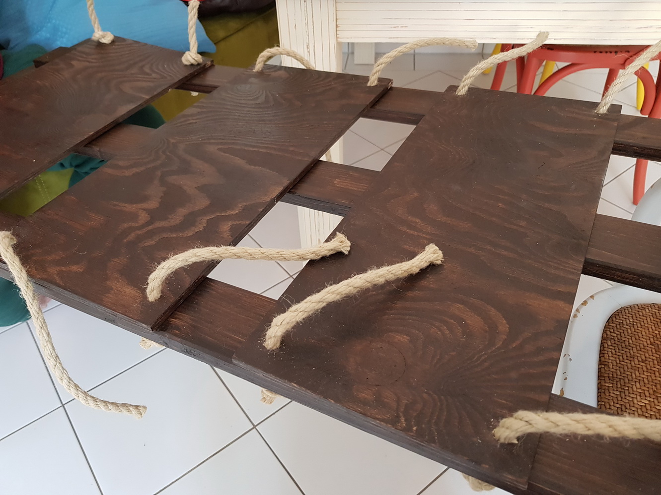 - Take a sharp knife (box cutter etc.) to shorten the ends of the rope where necessary. Voilà! It’s done!