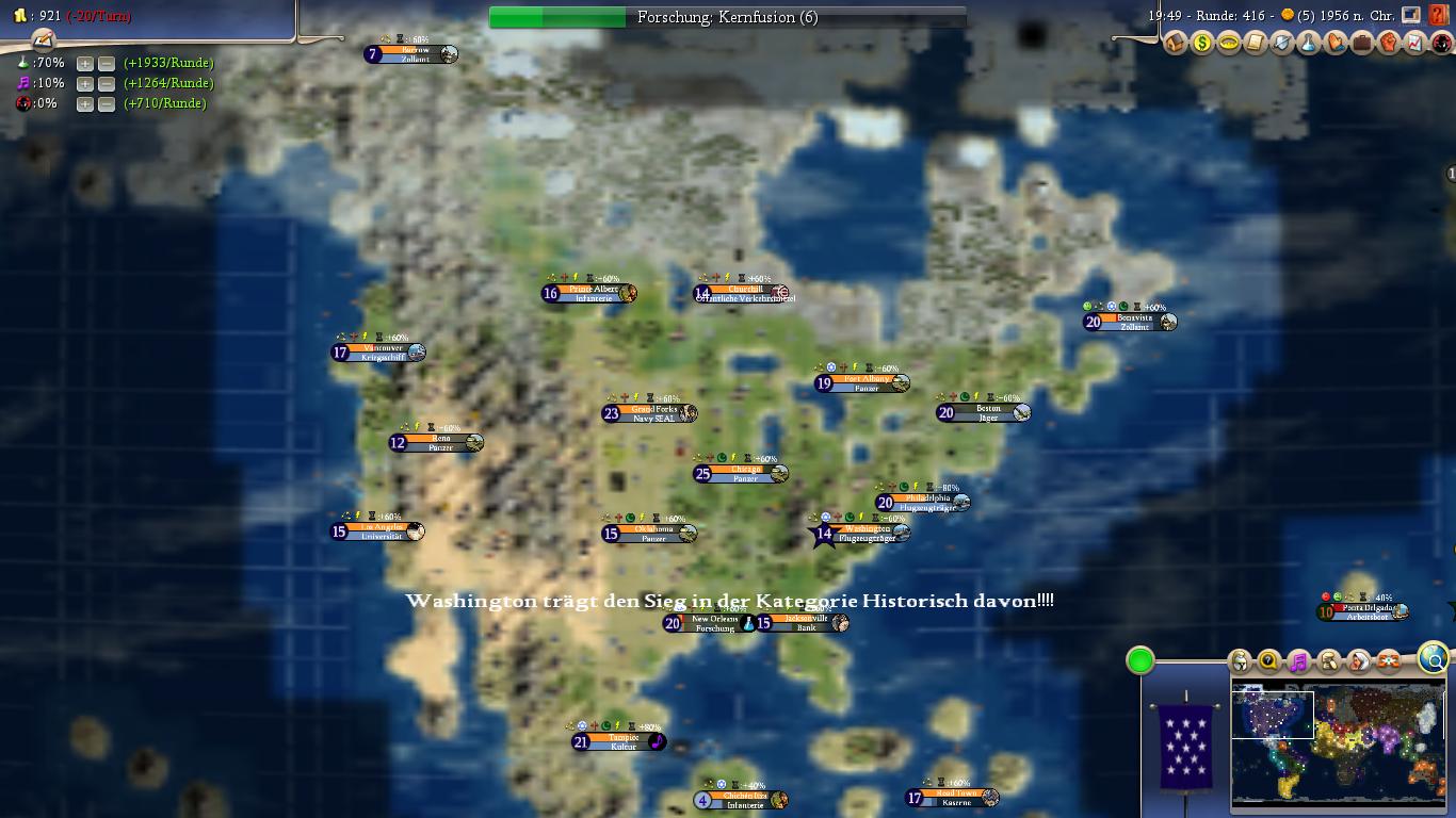 In the end as with most other civilizations I was liege lord to 4 civilizations (which is the maximum in Rhye’s and Fall of Civilization) and dominated the world. Although not as clearly as with some other civs that you can read about on this page.