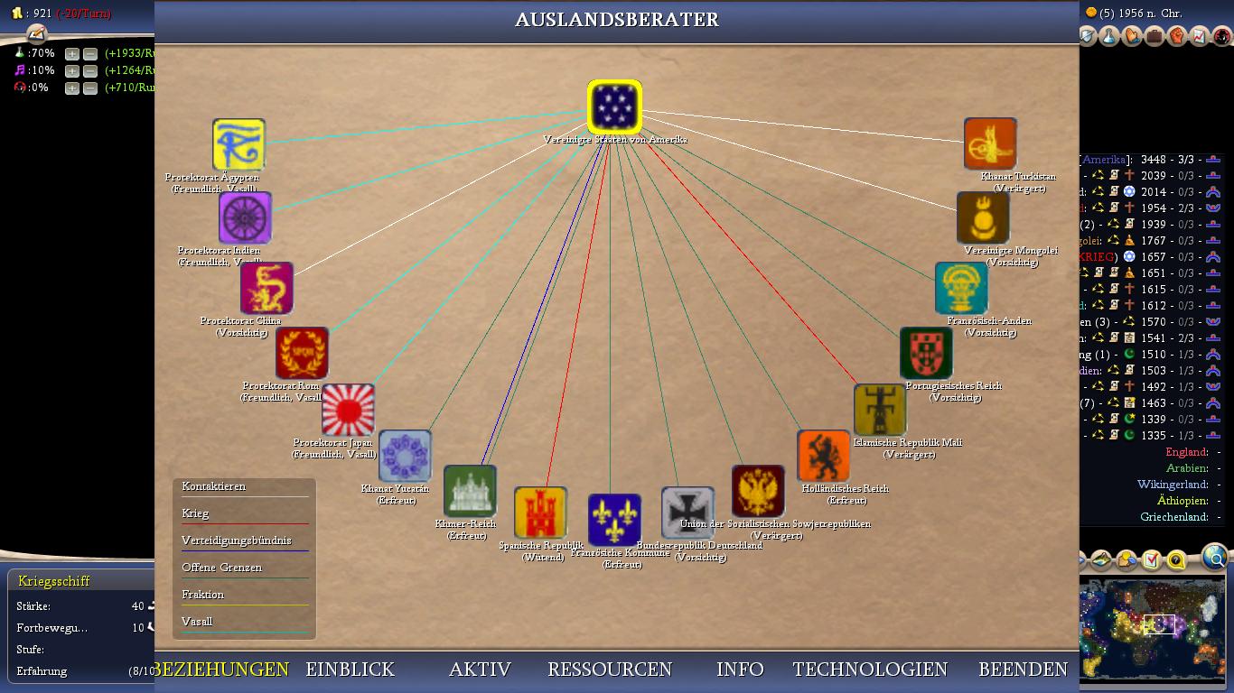 With your incredible economy none of the old world civs should pose a threat. The biggest challenge for your victory might be one strong power that already vassaled most some other civilizations. This could be Turkey: After conquering the Balkans Germany sometimes surrenders to them. And the Arabs usually bow before them, too. You should be strong enough to defeat either of them, but you’ll have to bring more troops in time to conquer the Middle East in time.