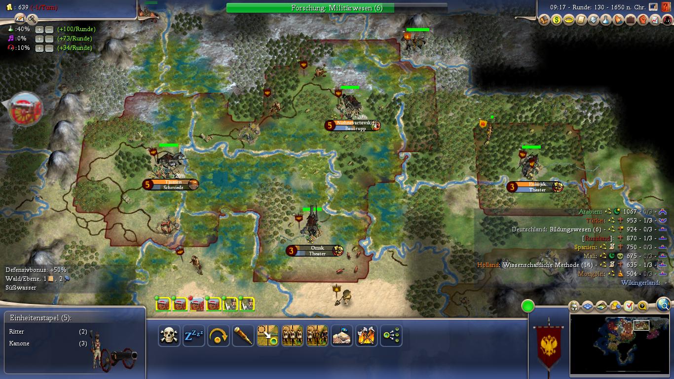 Russias main problem is it’s backwardness. Unfortunately your quick expansion will only worsen that burden. Technologically focus on those techs that allow you to make the most of your land and allow cities to grow! Don’t ignore defensive techs though.