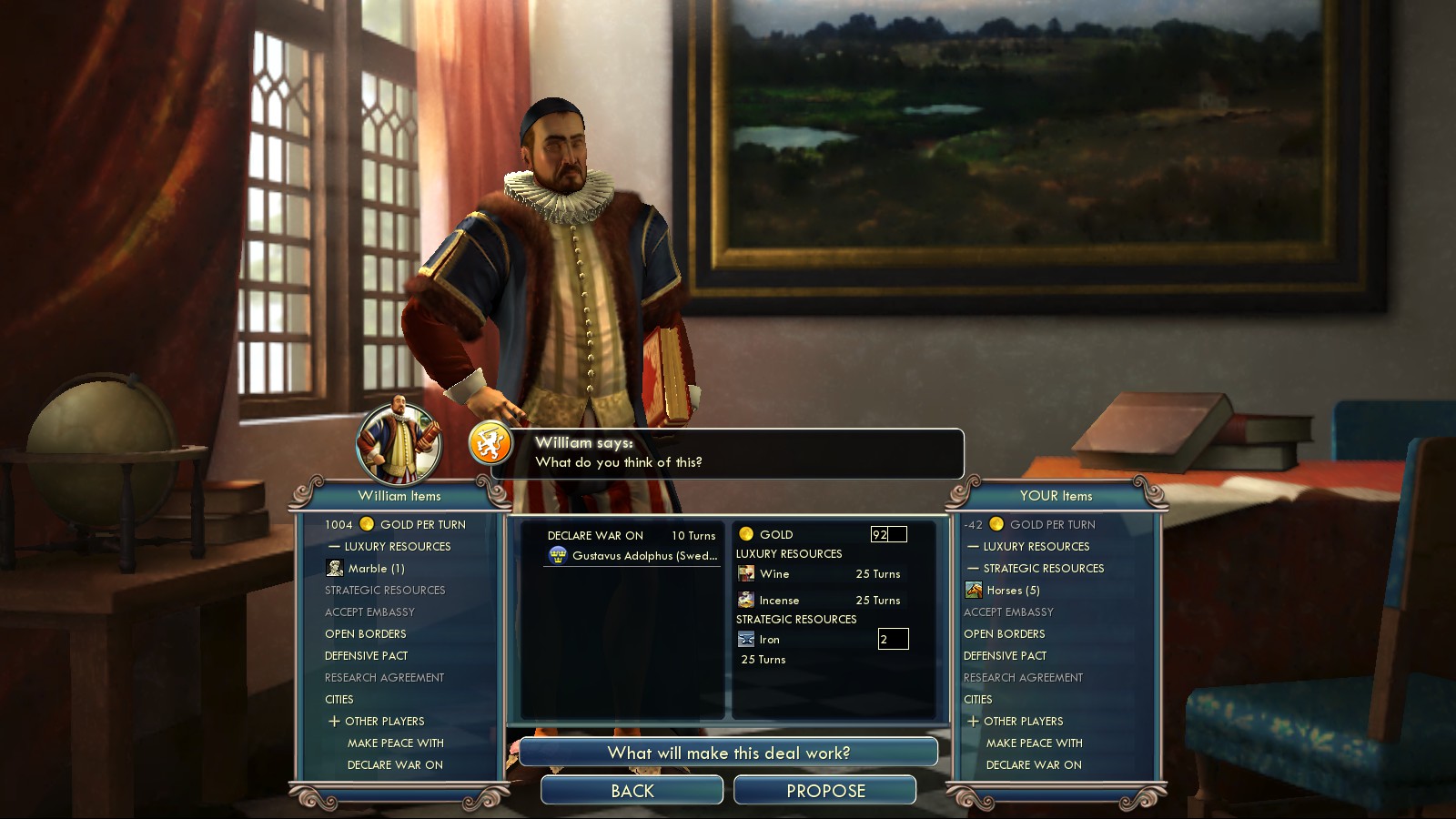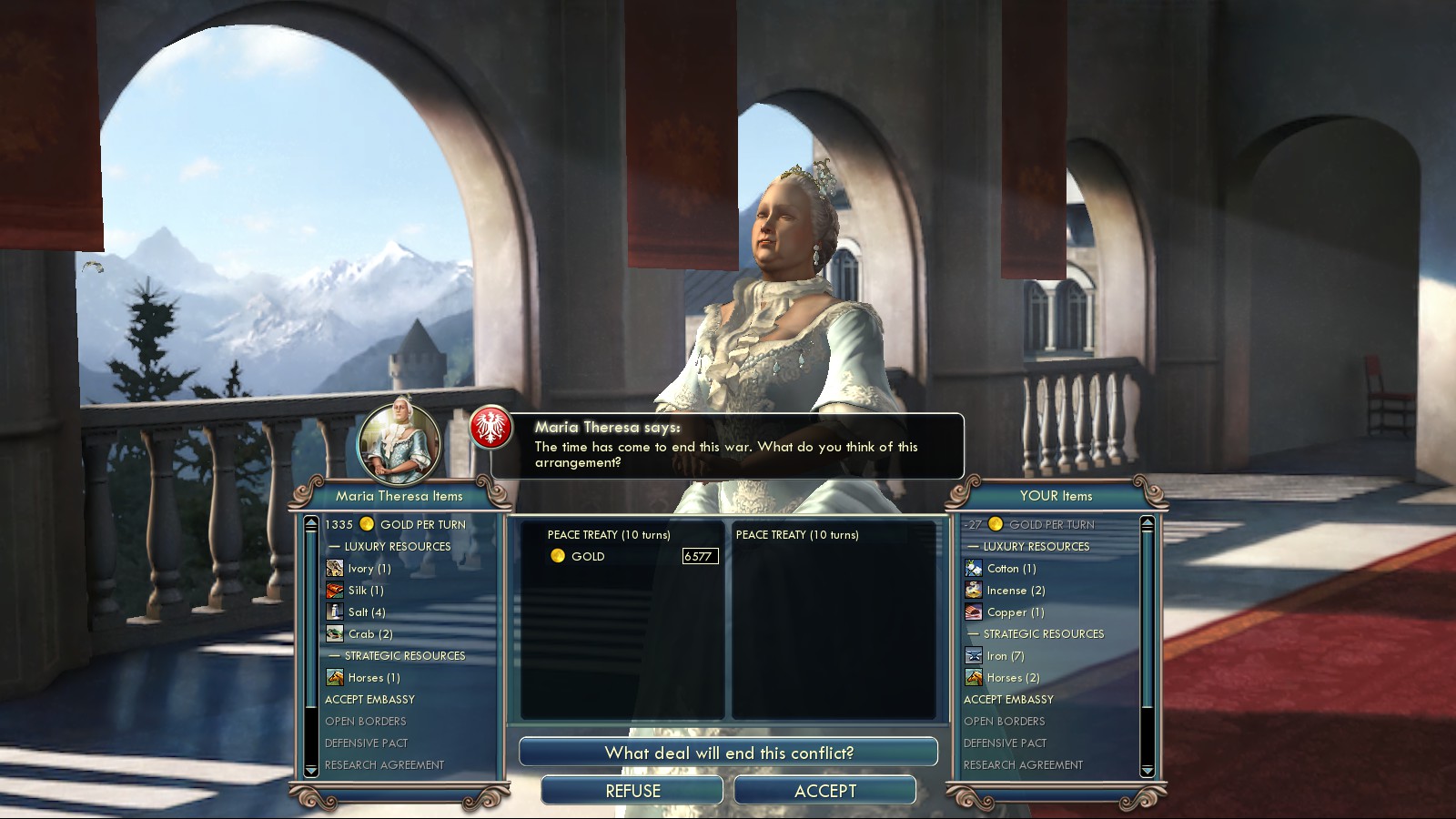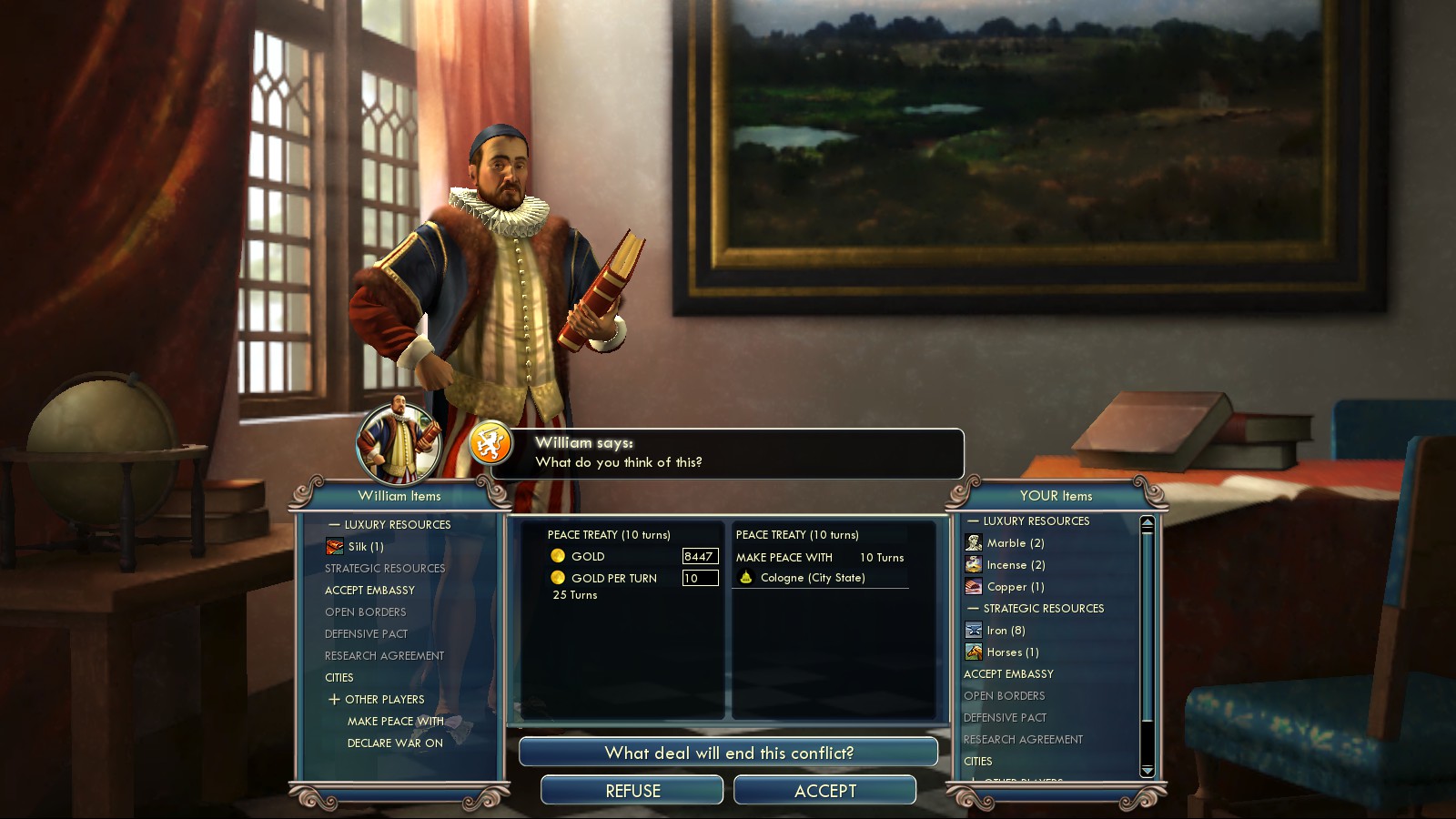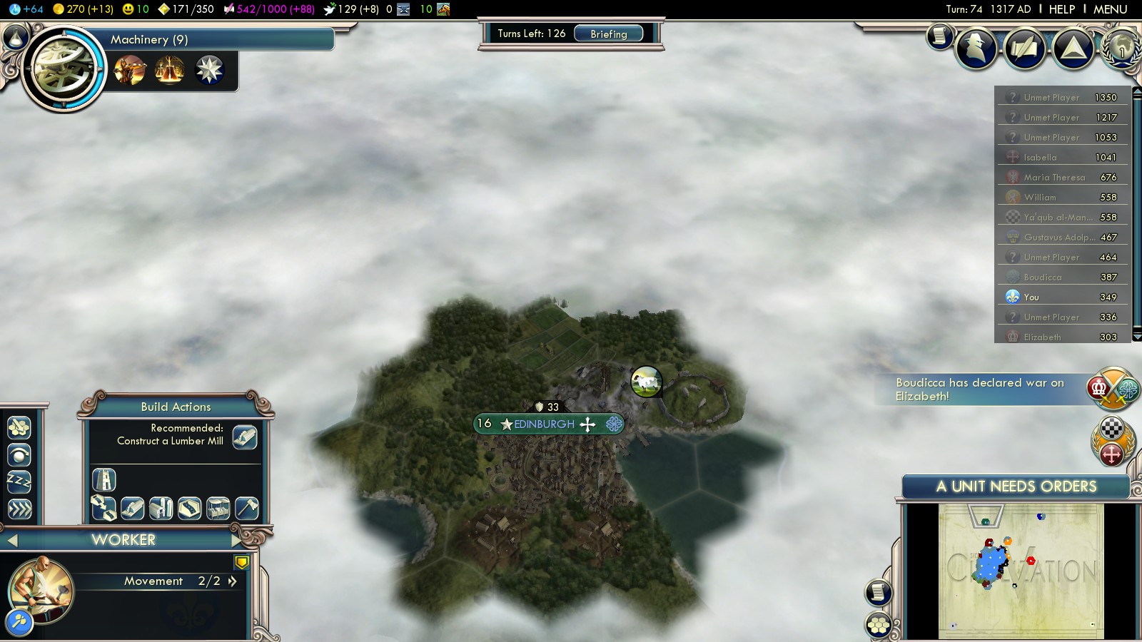 But I had to bribe the Netherlands into war with England so they couldn’t become part of that alliance (cost me 40GPT, 1 Luxury resource and 2 Iron).