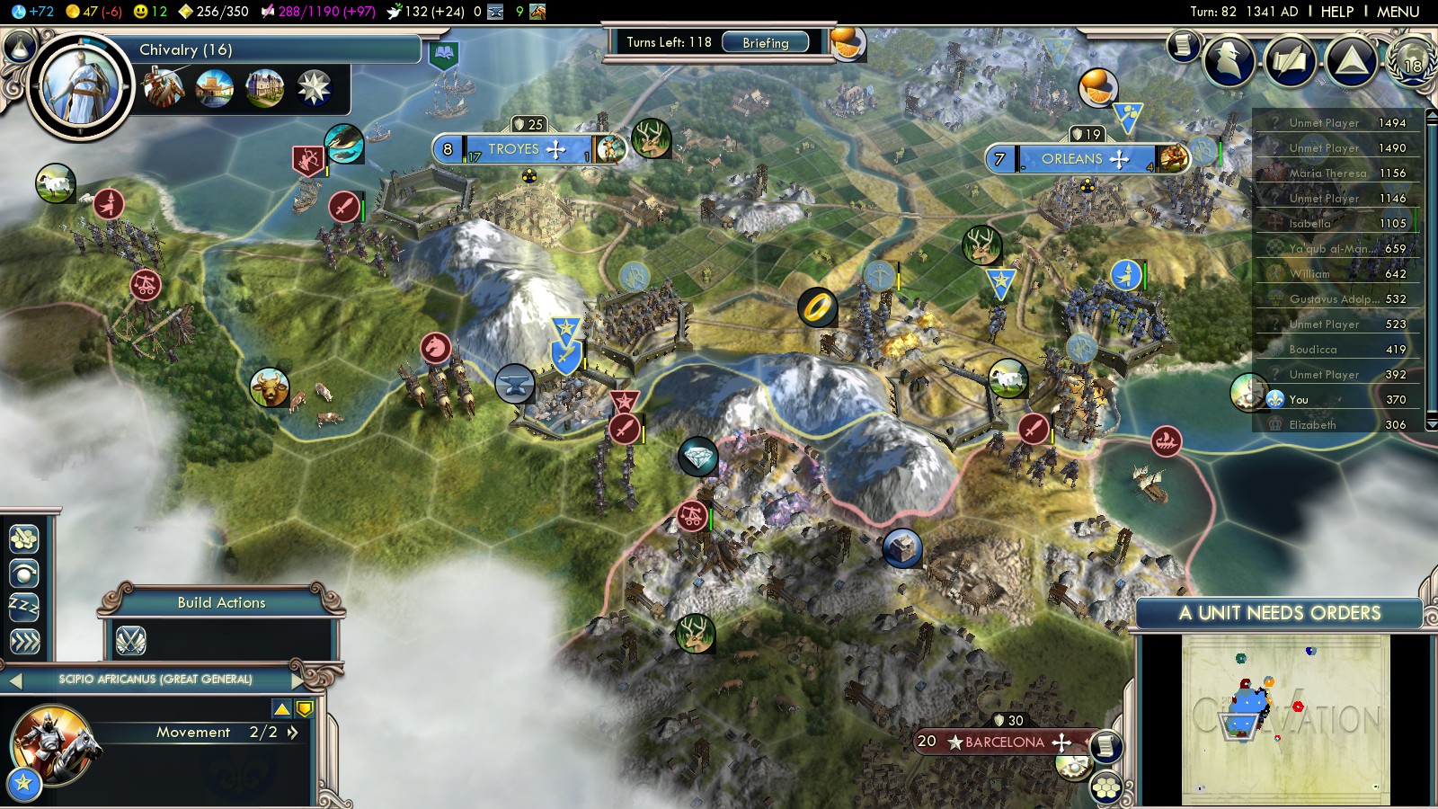 - Machinery (Crossbowmen only in turn 82)