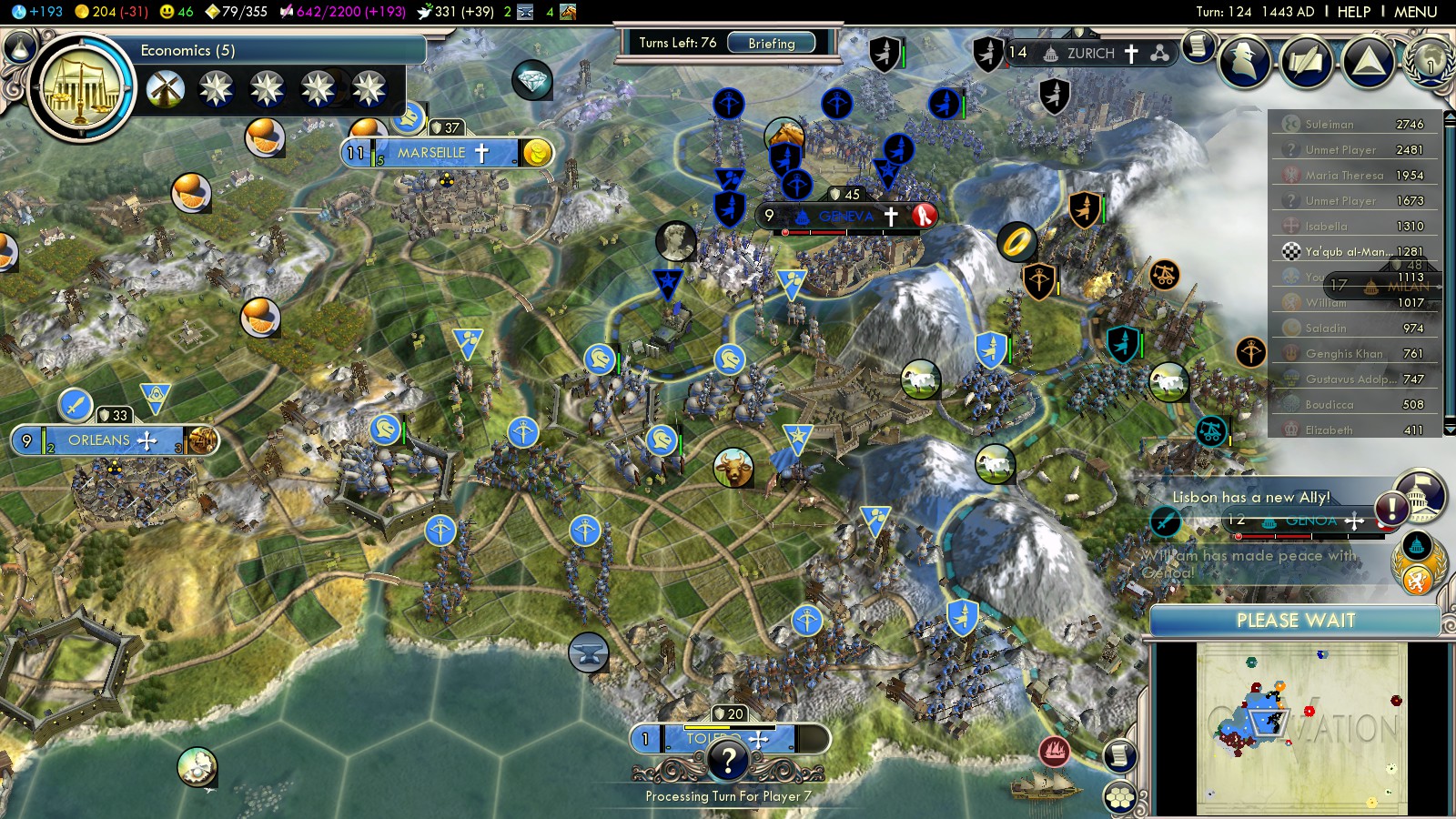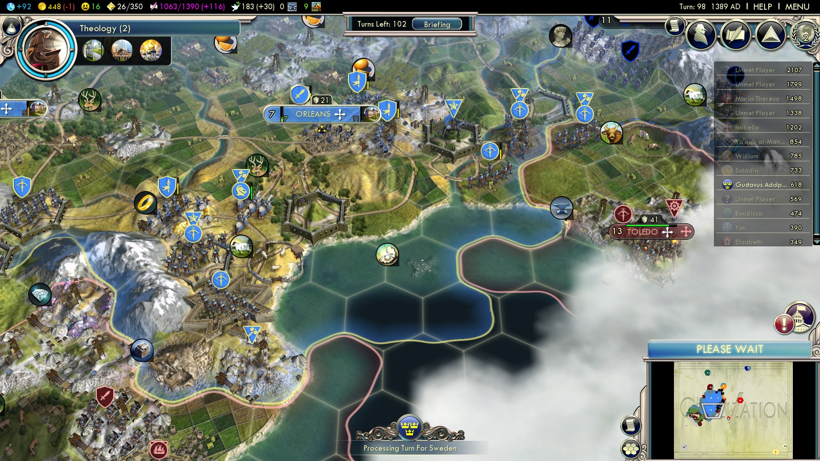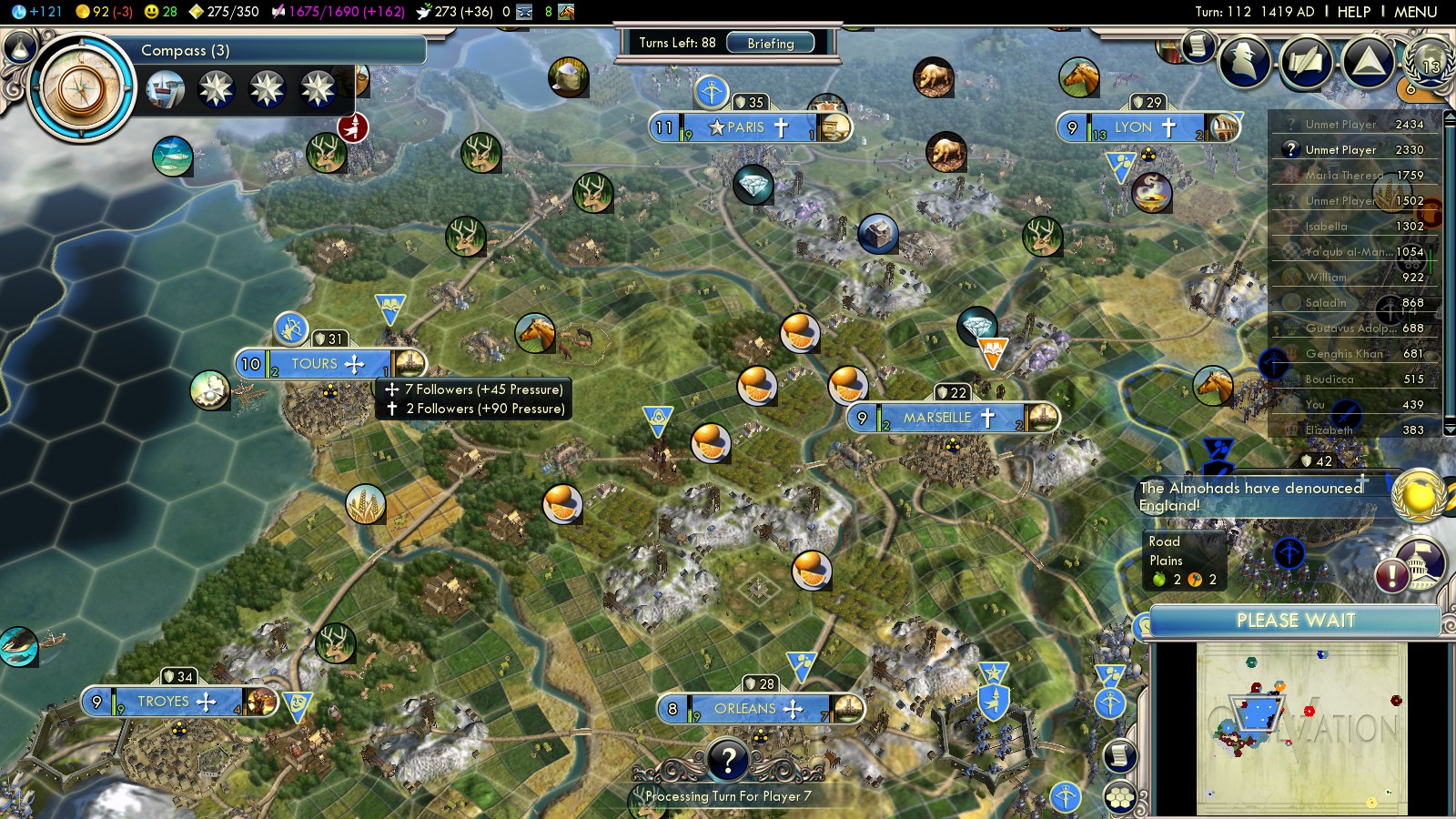 | Paris | Orleans (founded turn 6) |