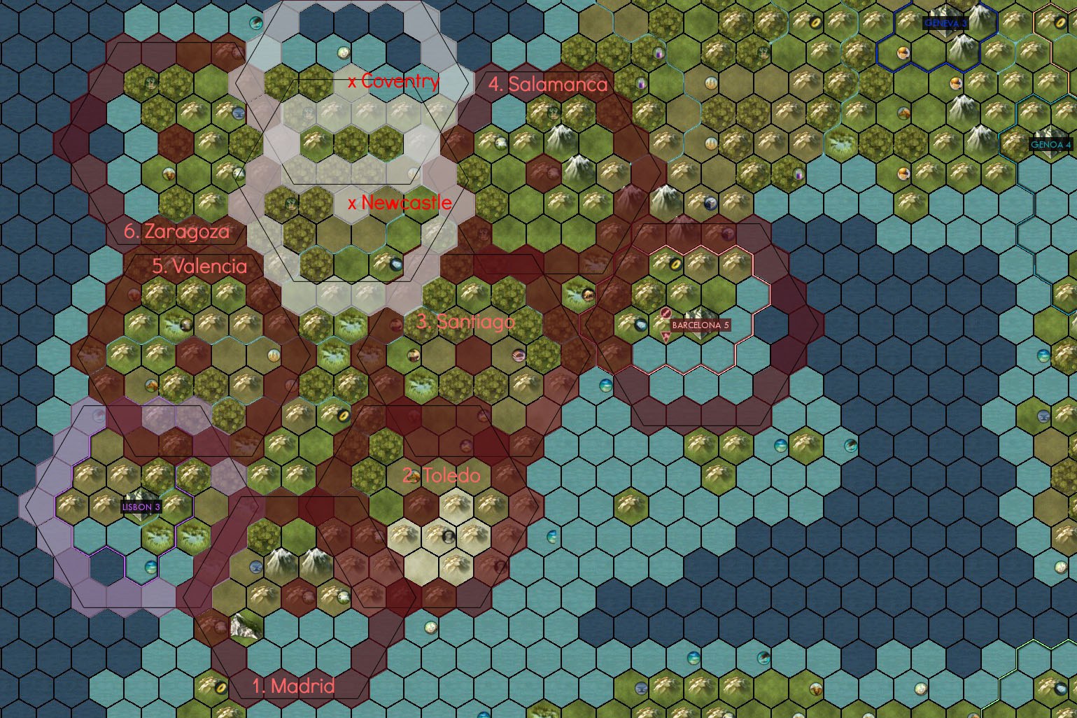 Above are my initial city positions for Spain. As you can see from the order: