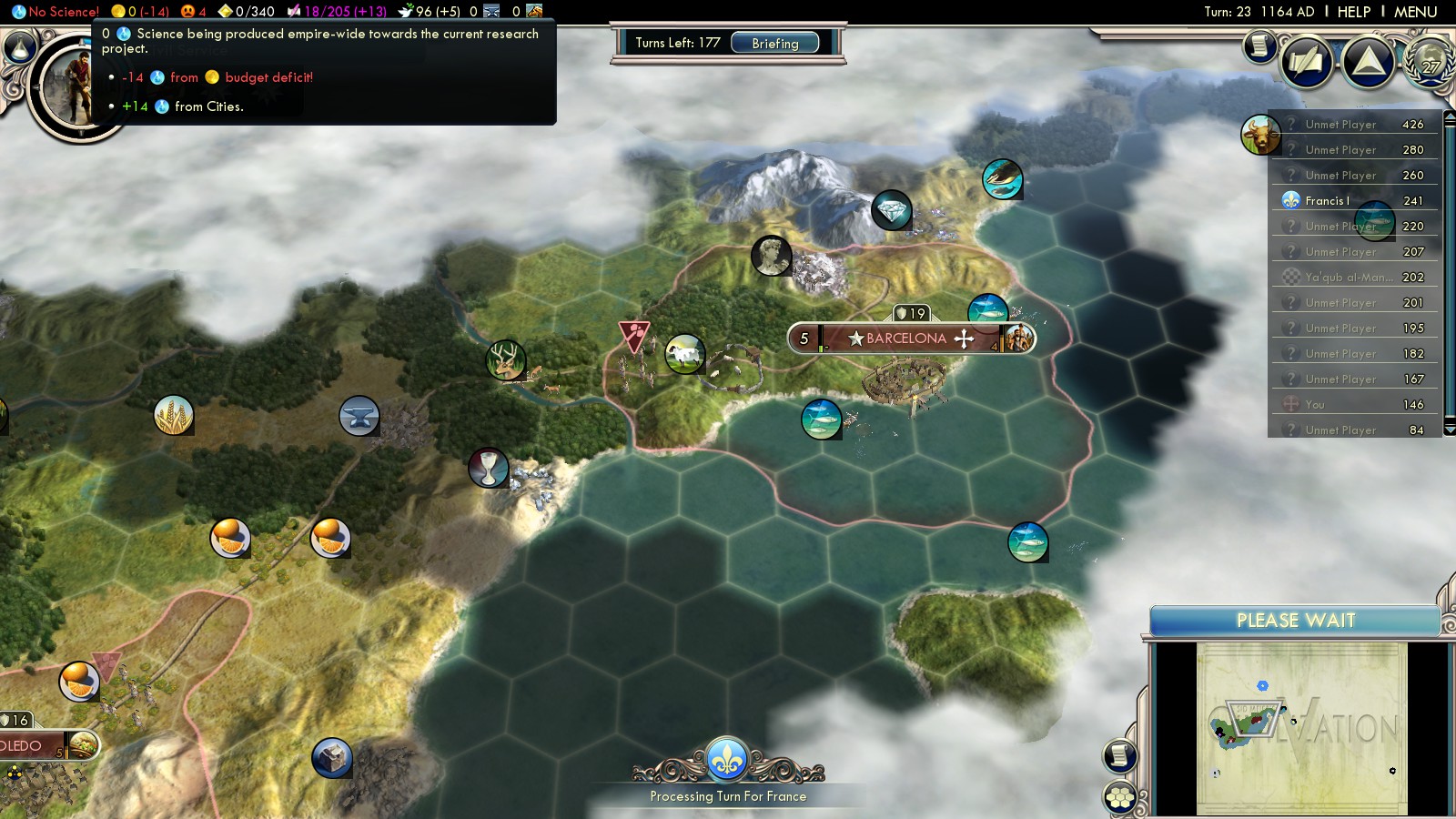- Civil Service (turn 43)