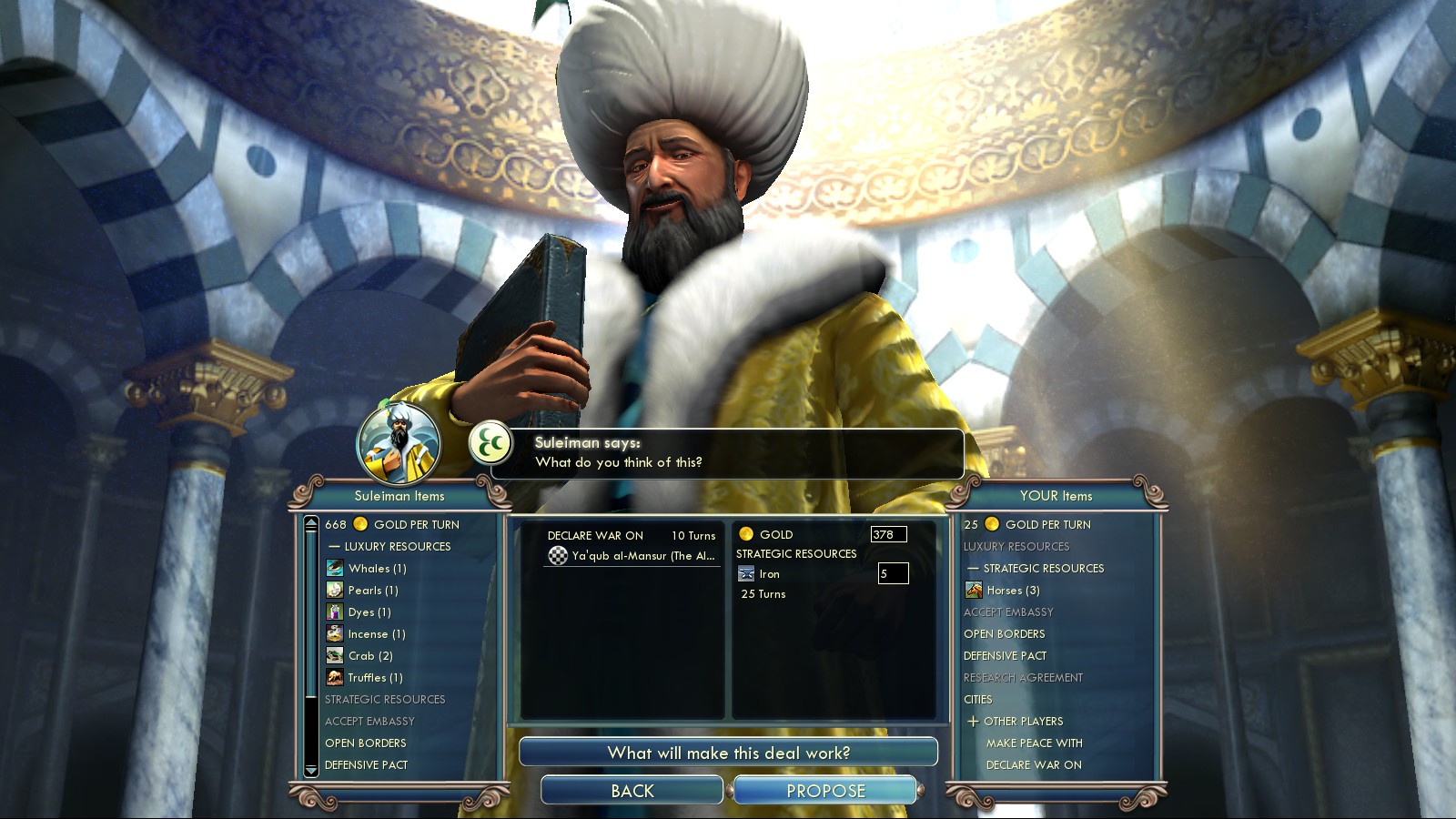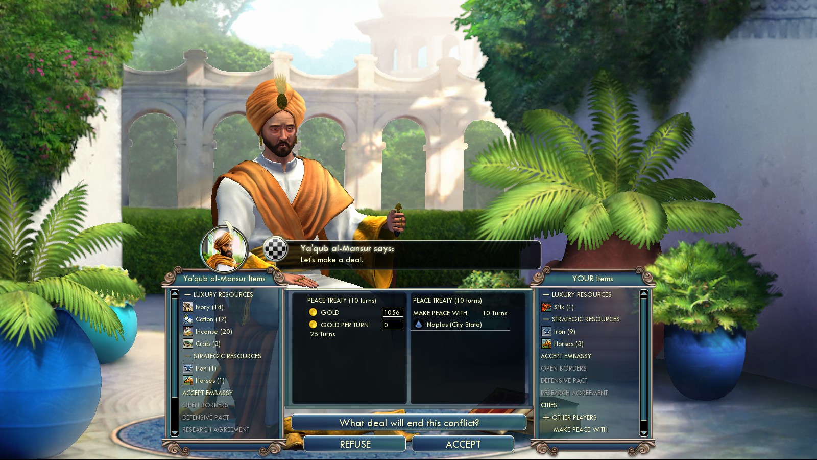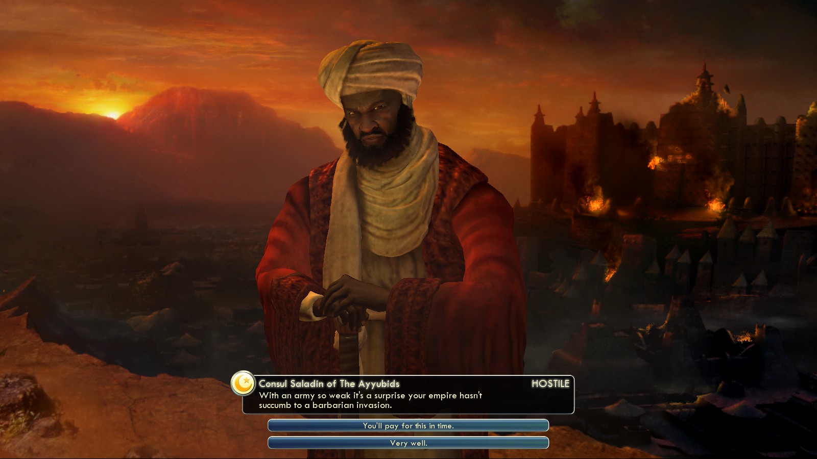 As I literally bribed the Ayyubids with everything I had, including one Luxury resource I only had once, I declared war on them right after bribing them against England. At least it successfully prevented England from ever going to war with me.