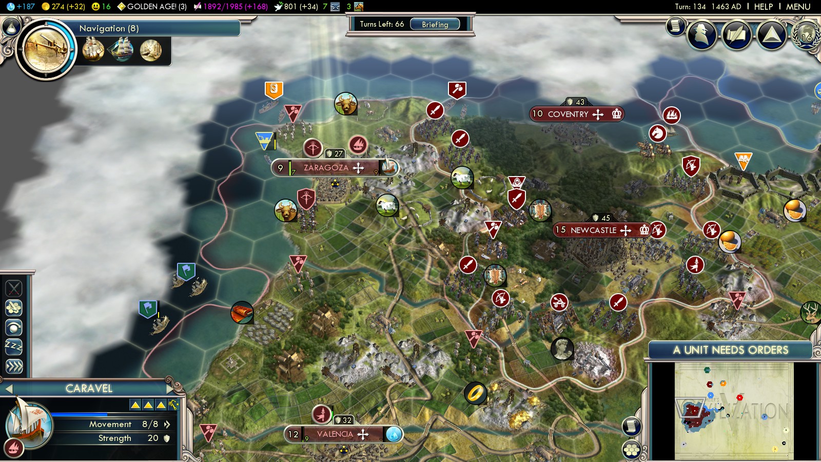 - Zaragoza finishes a Caravel in turn 134