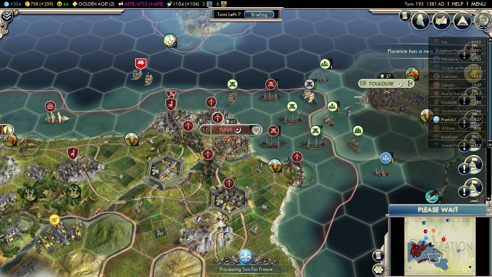 Research Agreement with William and Austria in turn 128! - Navigation (turn 141)