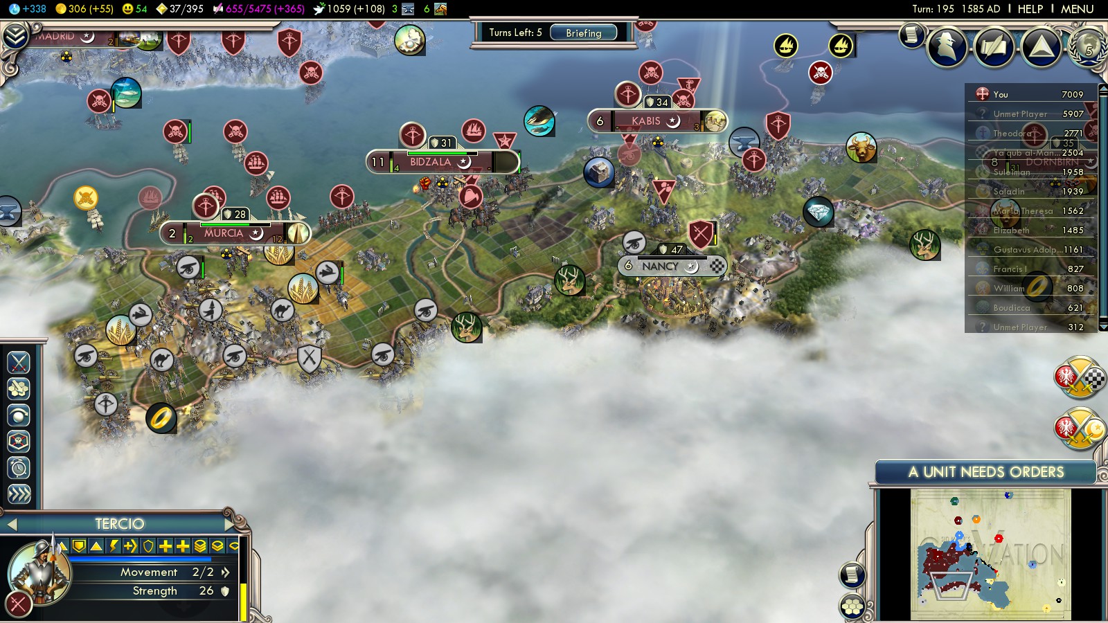 - Primary goal is to block the coast so the Almohads don’t settle there. They came via Lisbon though and I had to declare war early.