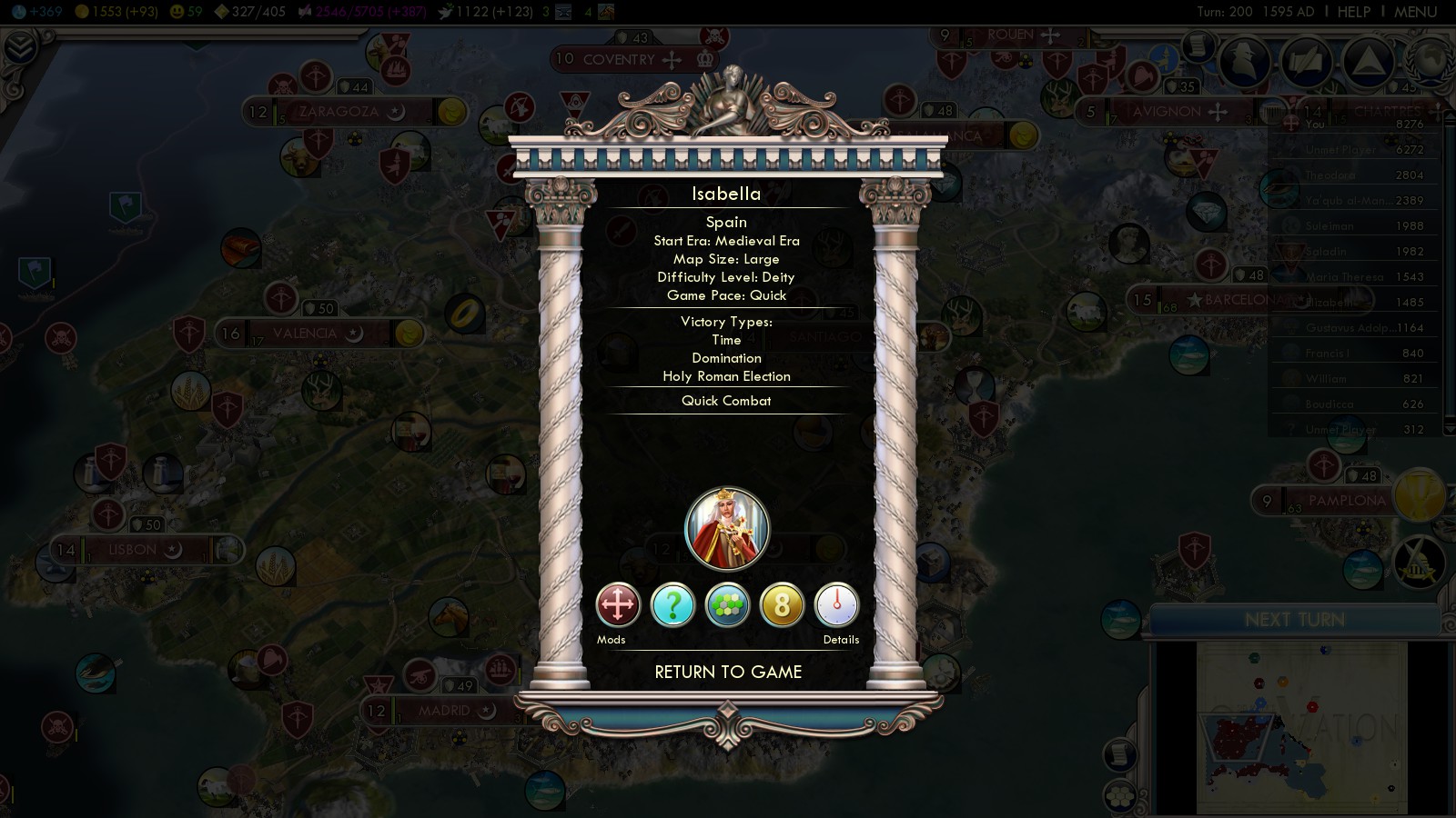 All this is possible, even on Deity difficulty. Not only that: You can also make Spain the main exploring nation in the Age of Discoveries! You can re-play Spains history!