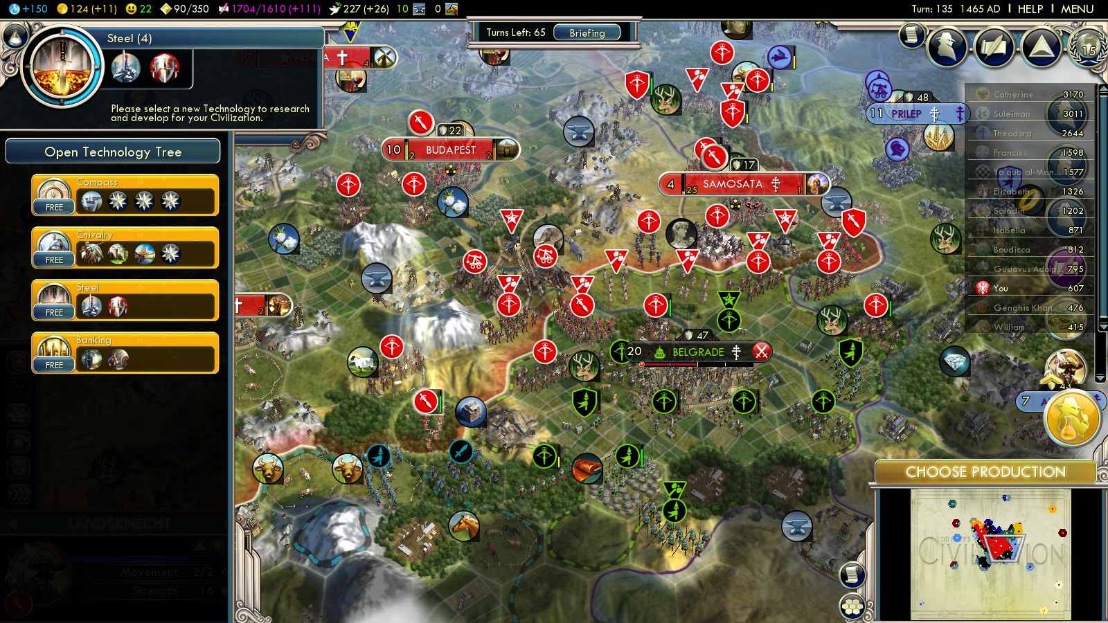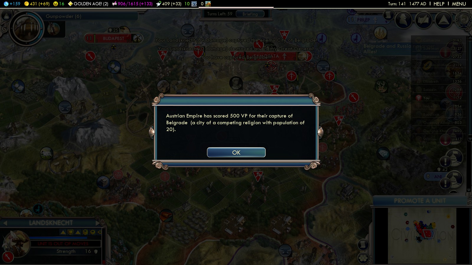 - Capture Budapest (turn 113)