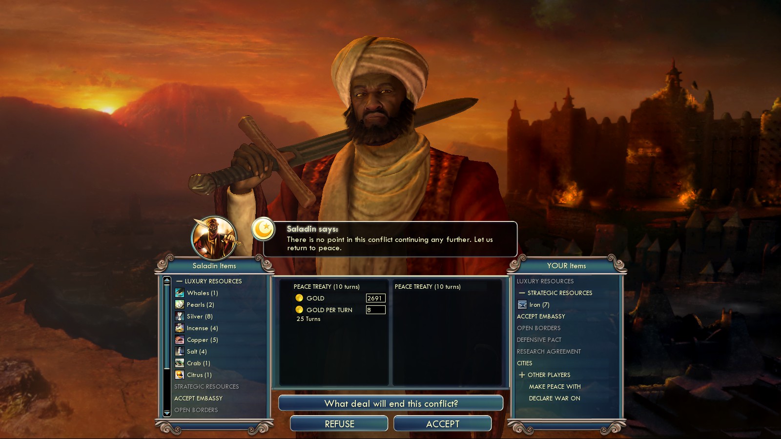 - when making peace – demand all gold you can get