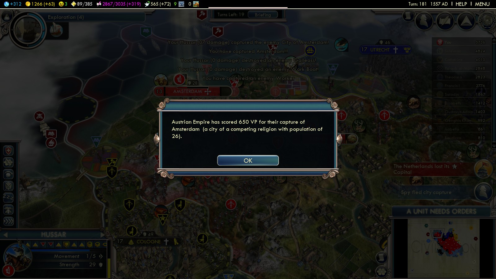 - Capture Amsterdam (turn 181)