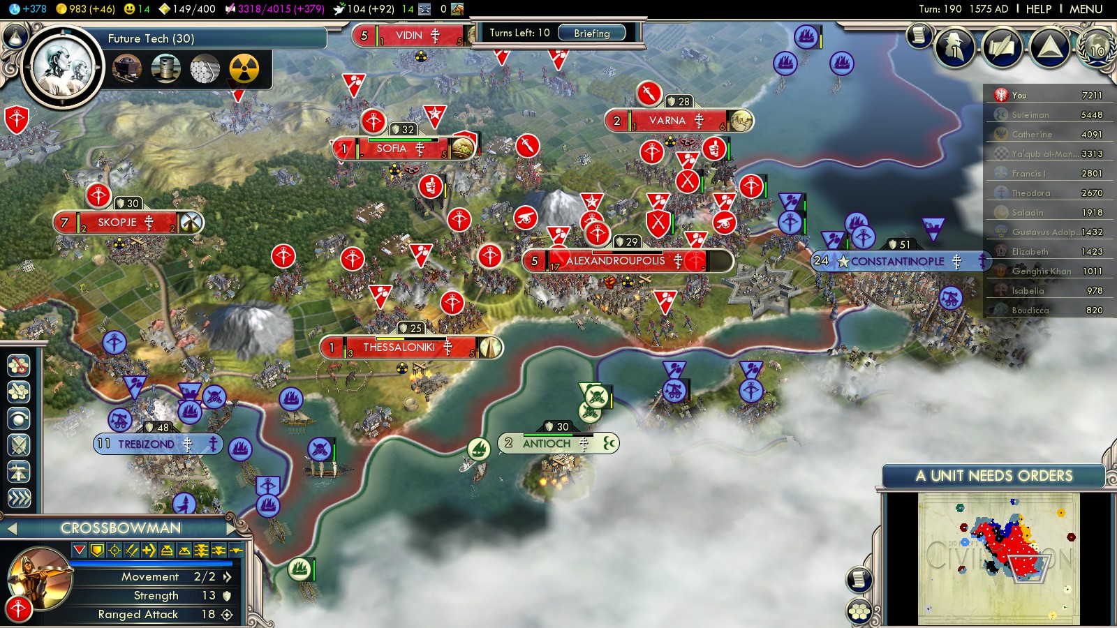 - Capture Adrianople (turn 188)