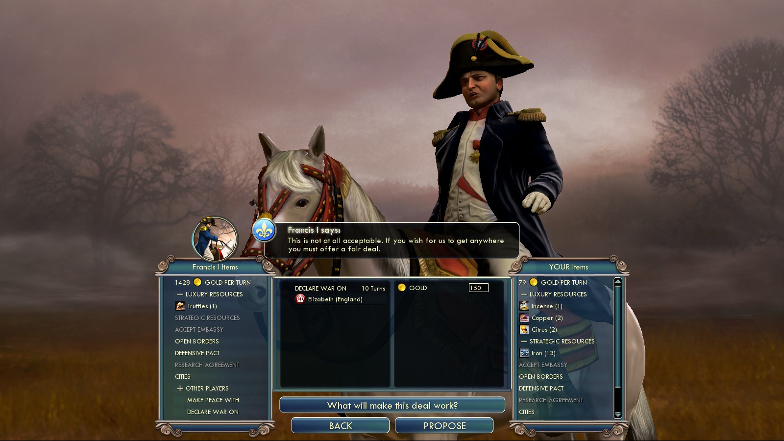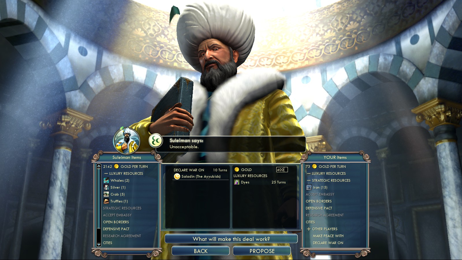 The least powerful unique trait in the hands of a player on Deity difficulty. Not only will you have a hard time being allied with a City State for 5 turns, but even in this case you’ll lack the funds to “buy” the City State. |