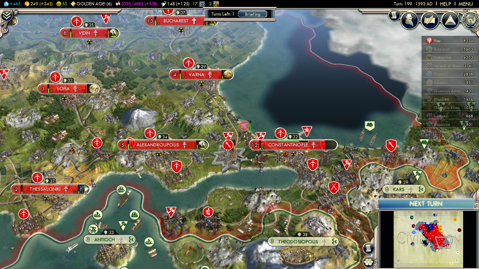 - Capture Trebizond (turn 195)