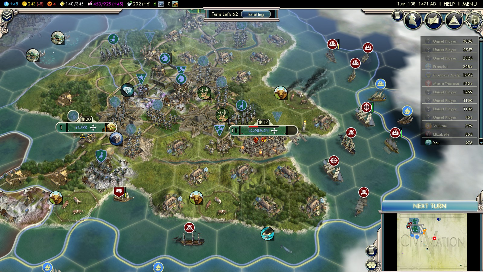 | Turn 31 (Turn 30: England declares War) | |||