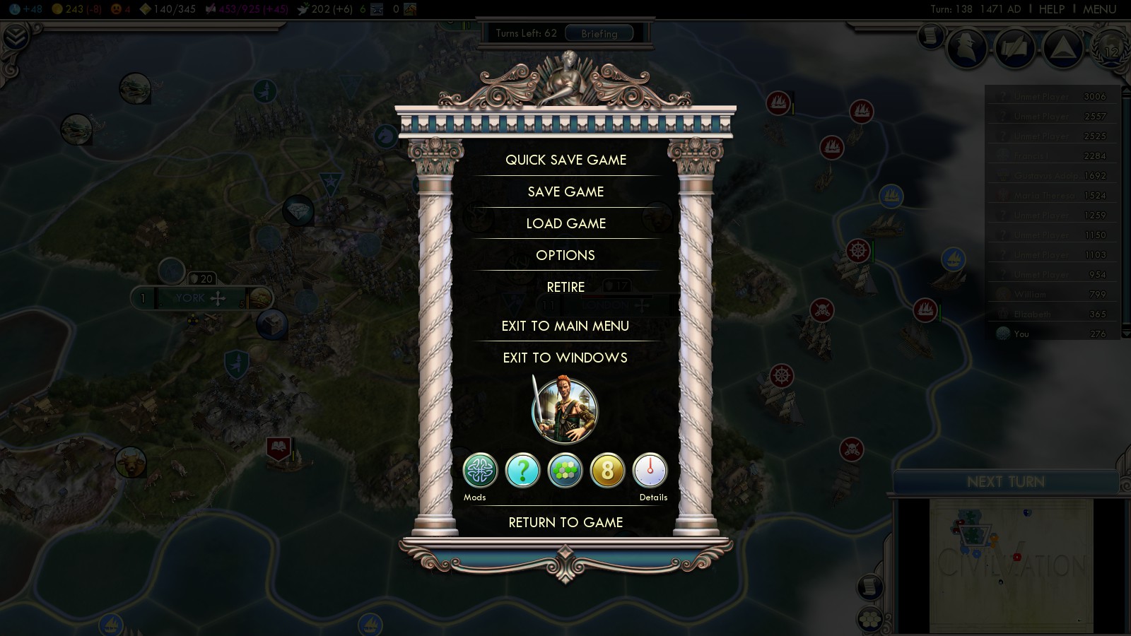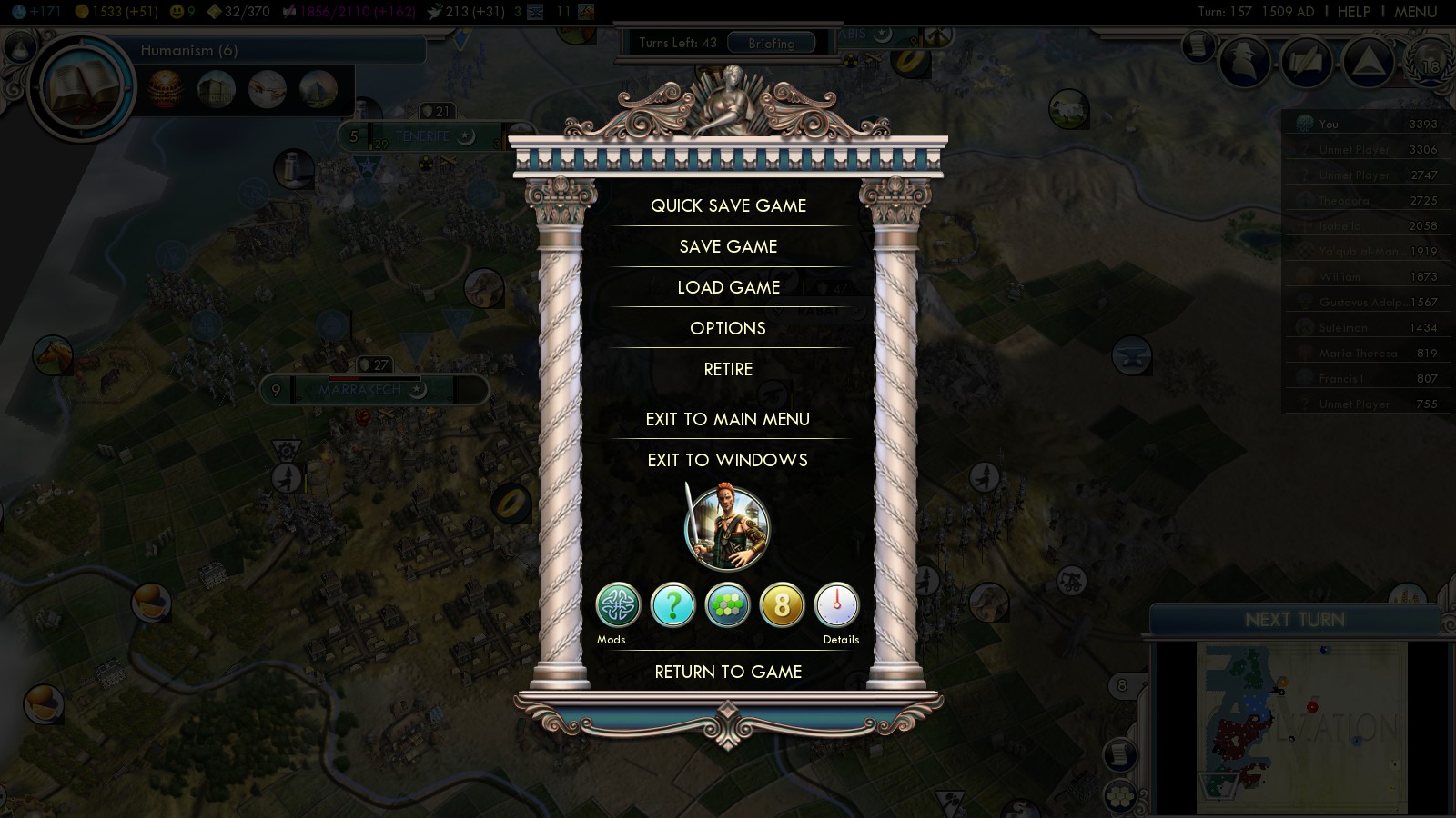 Also: Making the “Never take our Freedom” Steam achievement is an incredibly rewarding experience. That was on Emperor though. Finding a way to repeat it on Deity difficulty, especially after the first failed attempts, makes it even more special to me. This probably is the reason, why in this post I included 3 images of the Main menu, highlighting the fact, that this was really really Deity difficulty.
