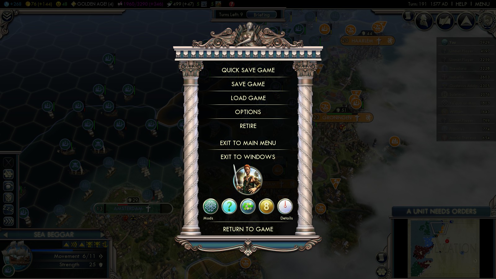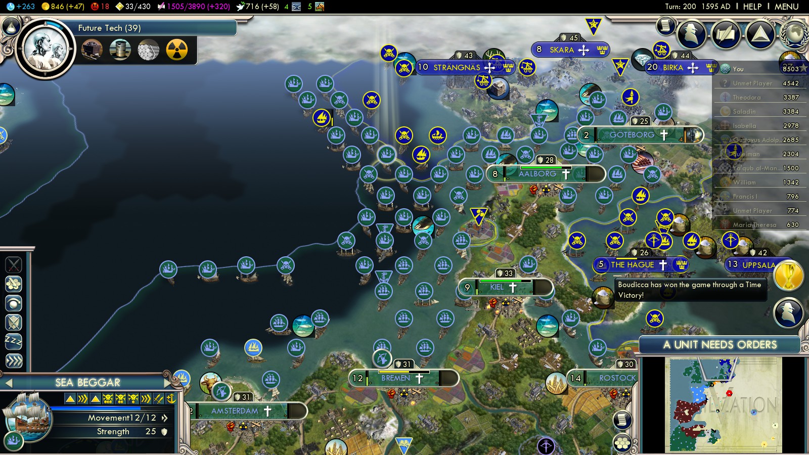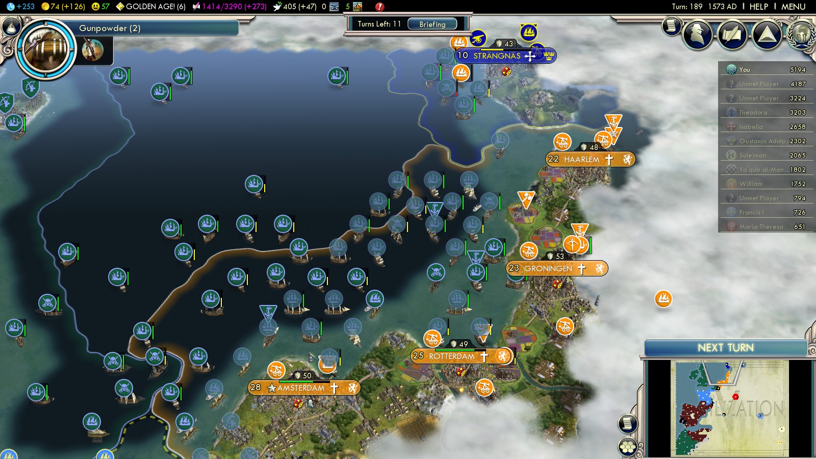 - Haarlem 16 (captured turn 195) – 400 VP
