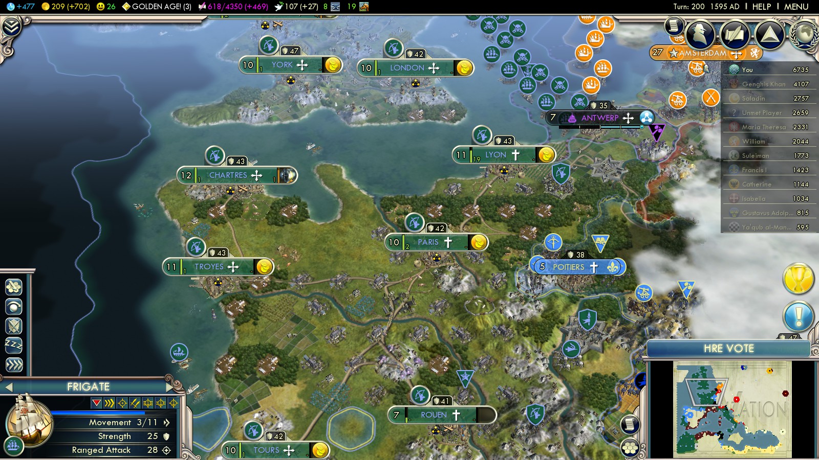 - Antwerp 16 (captured turn 186) – 400 VP