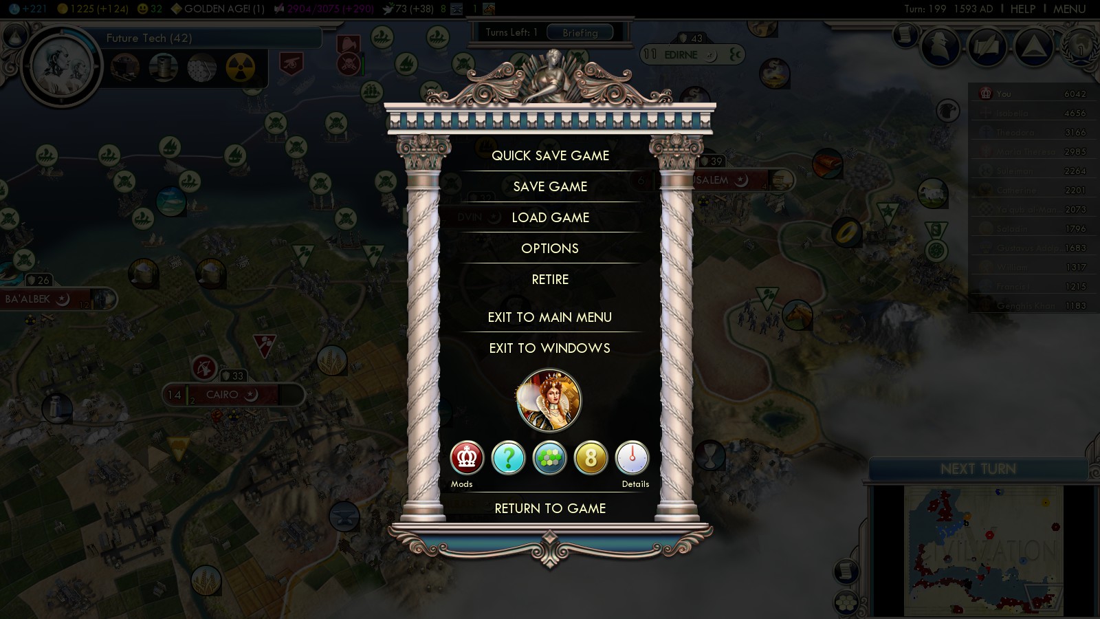 2. You experienced (a lot of) game crashes end game? I know when you researched the last technology (possible on emperor within 200 turns), it’s finished, impossible to continue… but now I also get crashes much earlier.