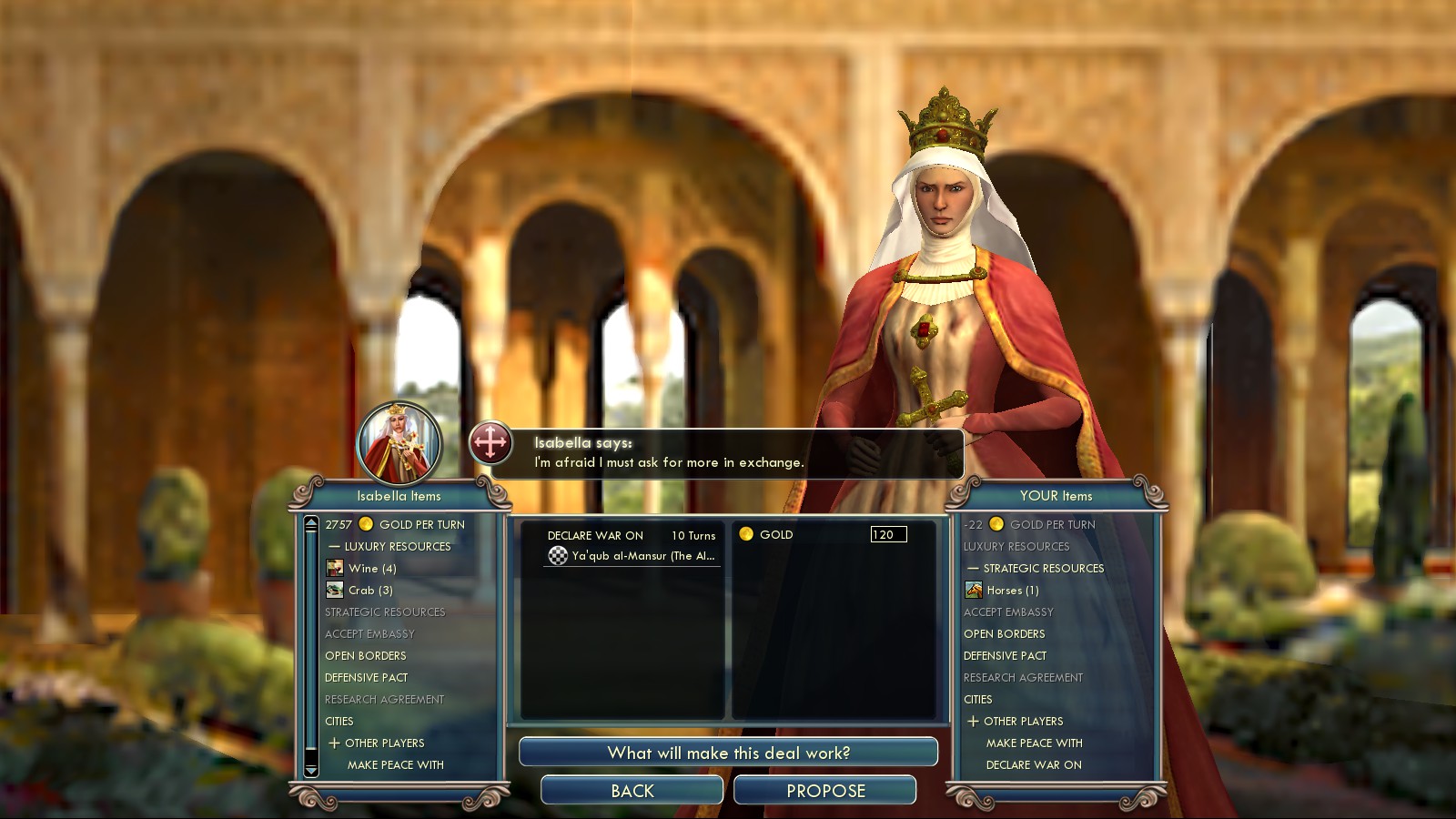 After that (or skipping it), continue your trek east – all the way to the holy land. Spain backstabbed me together with the Celts in turn 157. During the initial attack I had 3 Privateers, 1 Admiral, 1 Great General and a Lancer sailing south of the Spanish/Portuguese coast. They were all lost!!!