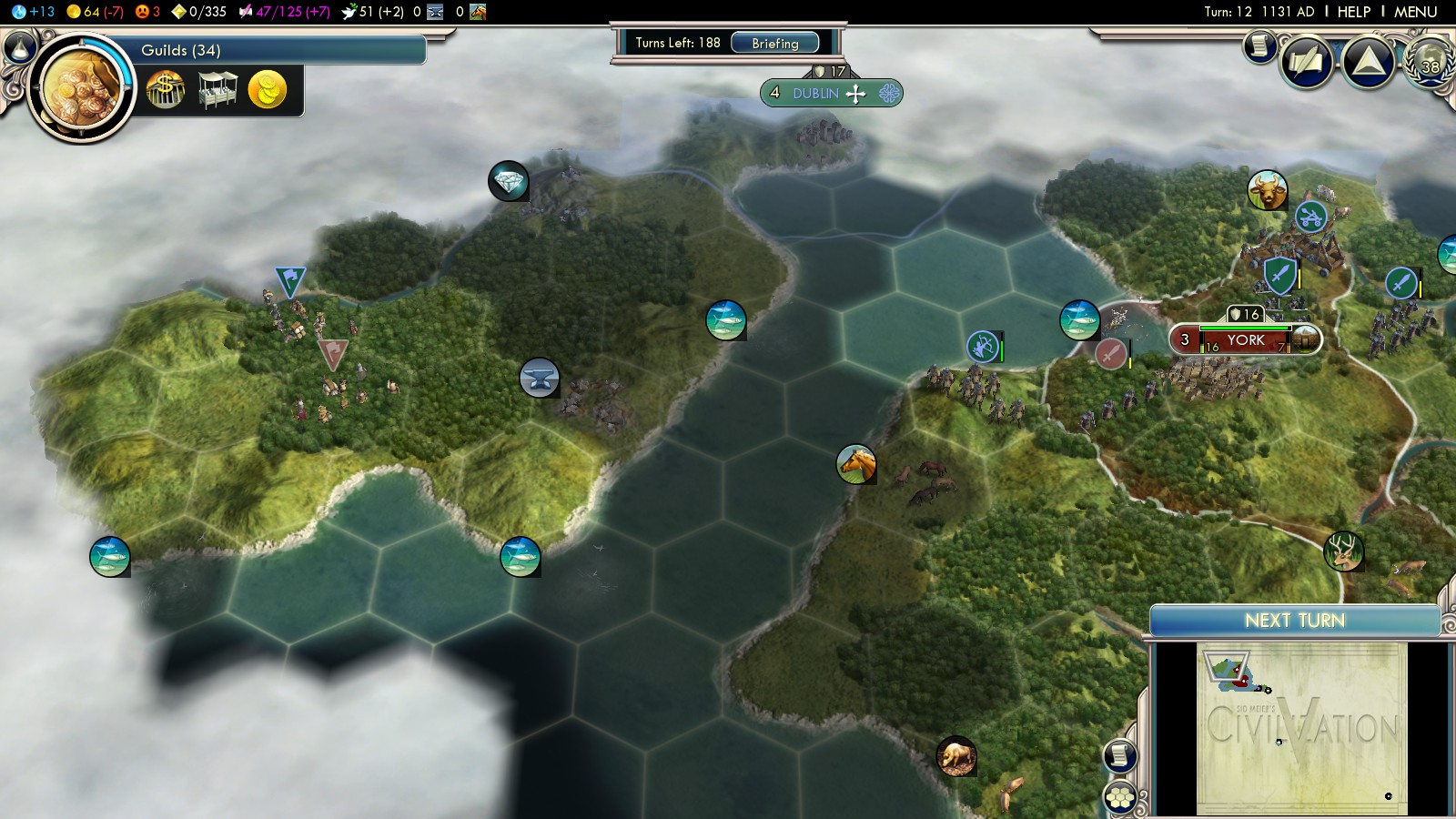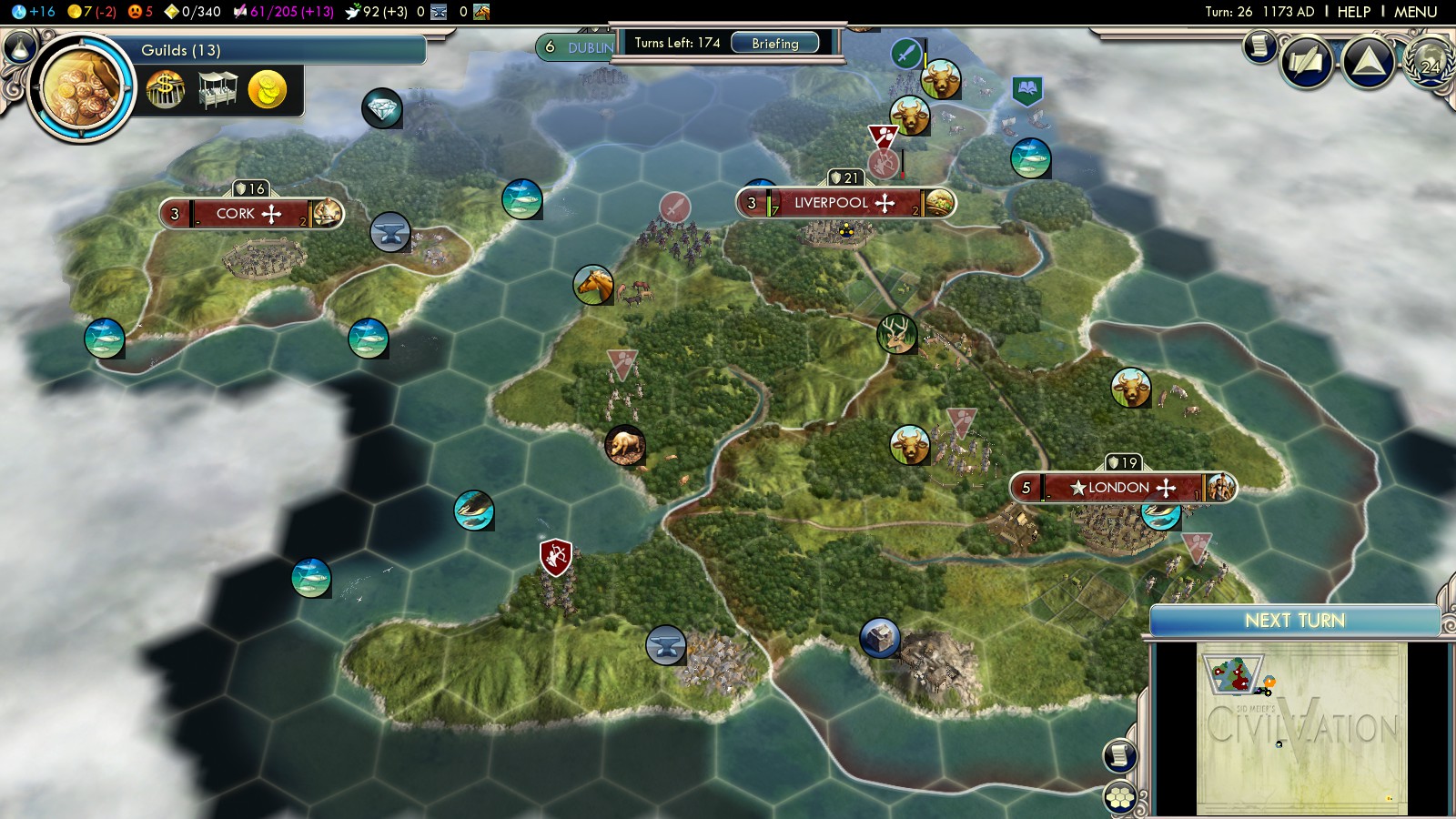 A lot of this initial strategy is similar to playing the Celts on Deity: Found Liverpool, to prevent more cities on Great Britain, defend against the initial Celtic onslaught and slowly take the offense. Although it might be tempting: Don’t settle a city on Ireland. You won’t be able to hold it and it’s a drain to your economy: