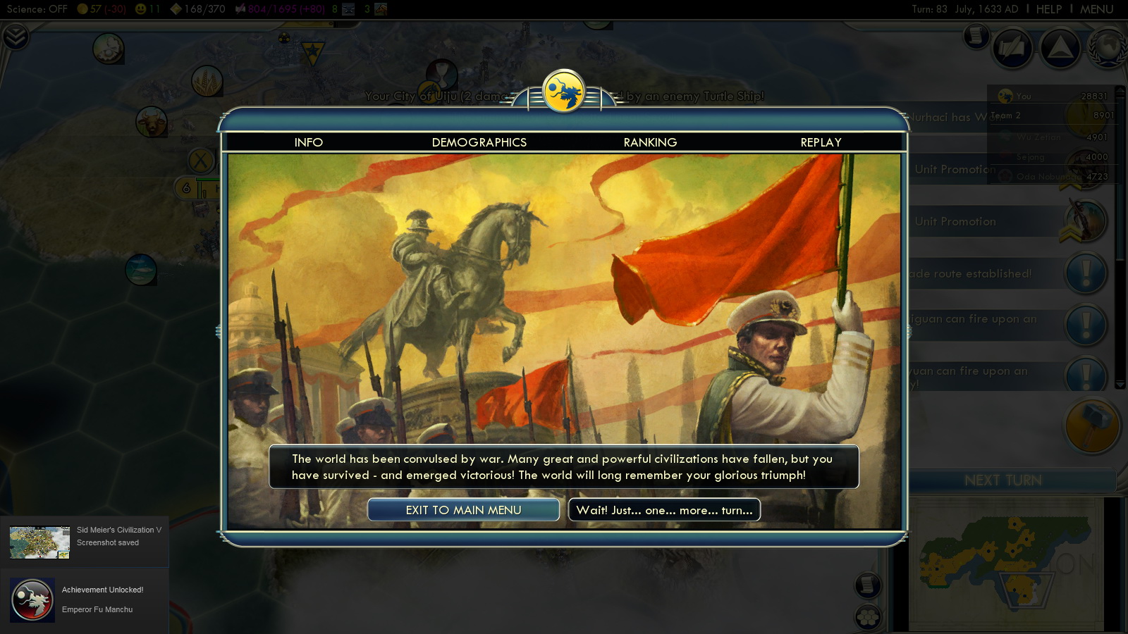 Winning the second attempt, hereby proclaiming myself “Manchu Emperor” (no Fu), brought a deep satisfaction! 🙂