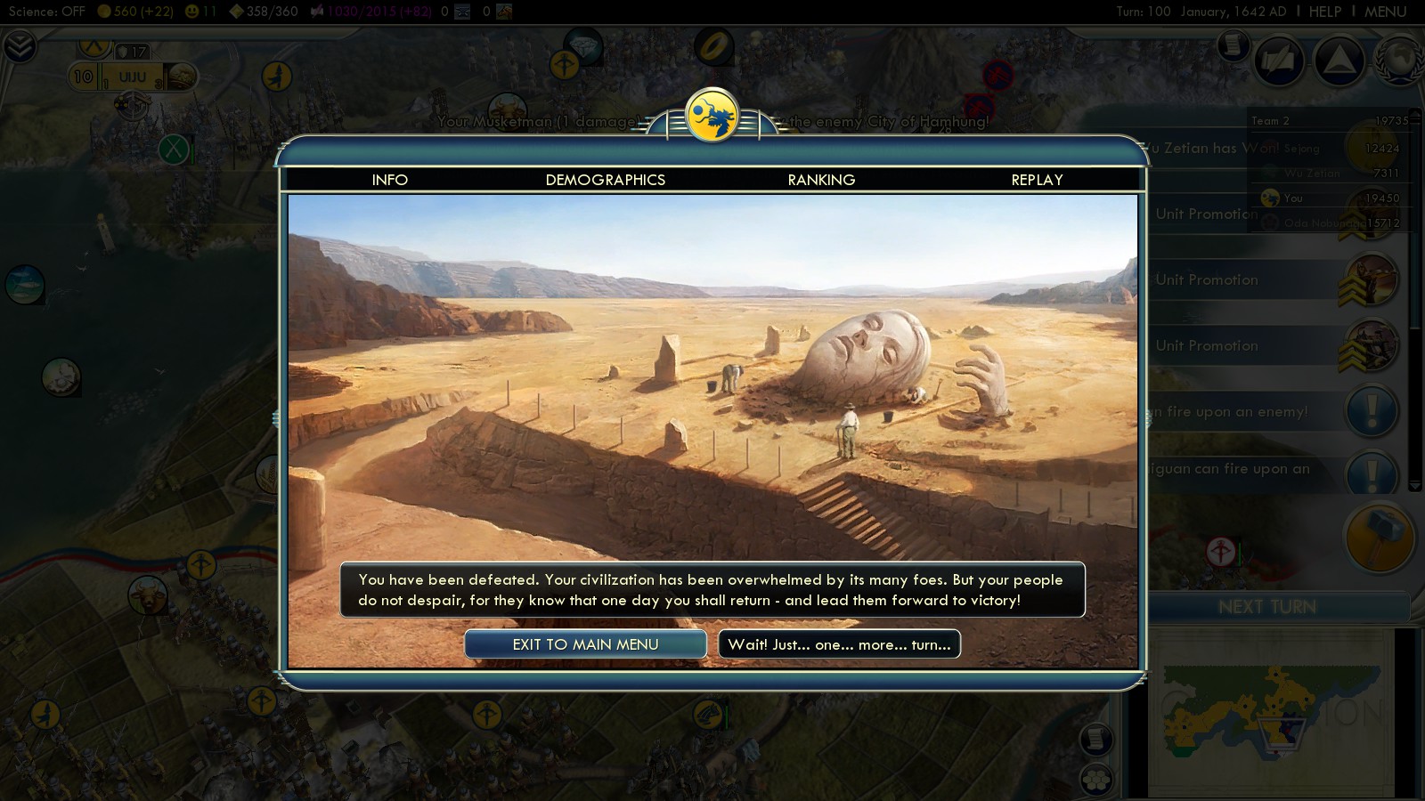 My question for you is: the screenshots you posted of your second China invasion show a lot of Musketmen. Where do those even come from? I do not have the option to train/buy them. I had maybe 2 from early Barb camps but being melee units they did not last until late game. But in that one screenshot alone around Shanhaiguan I see 8 Musketmen. How did you come by them?