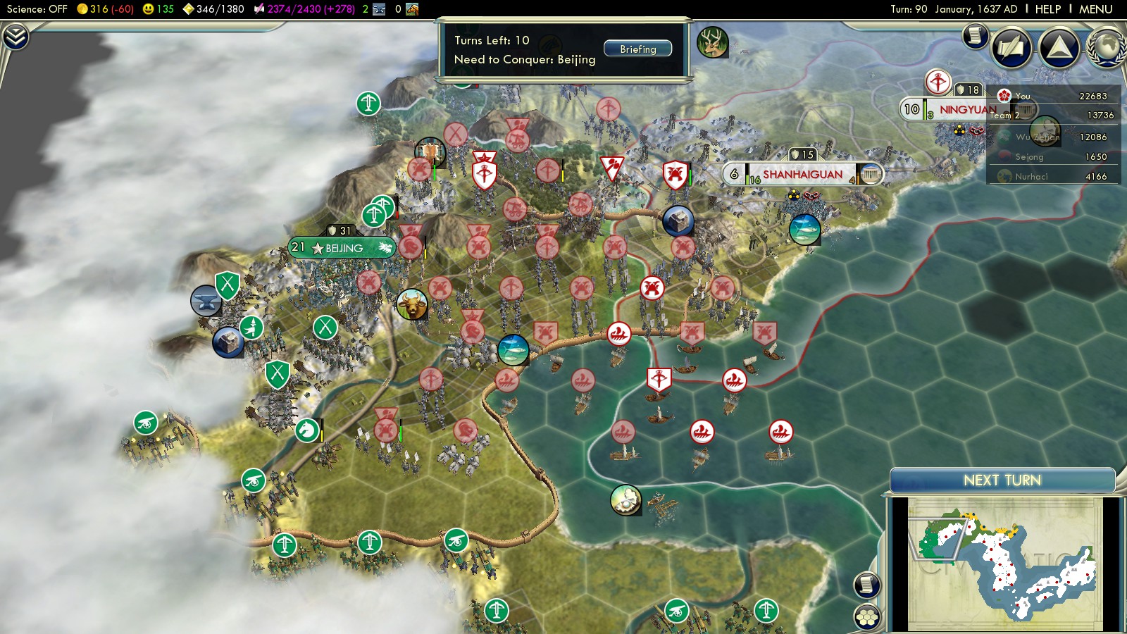 - Secure passage of your units on the way to Beijing (only if you come across the bay, you’ll be able to bring in sufficient troops to seriously threaten Beijing)