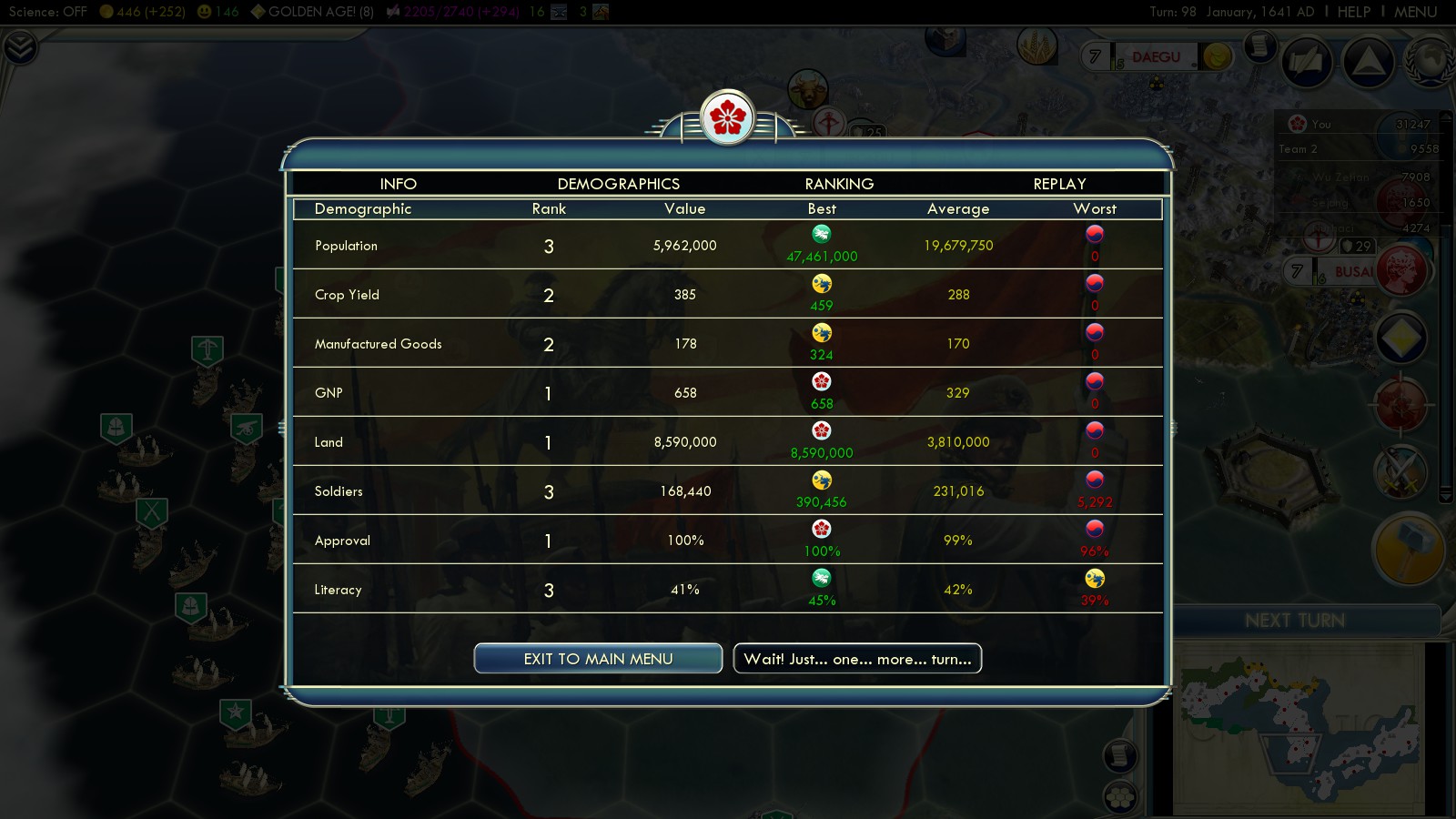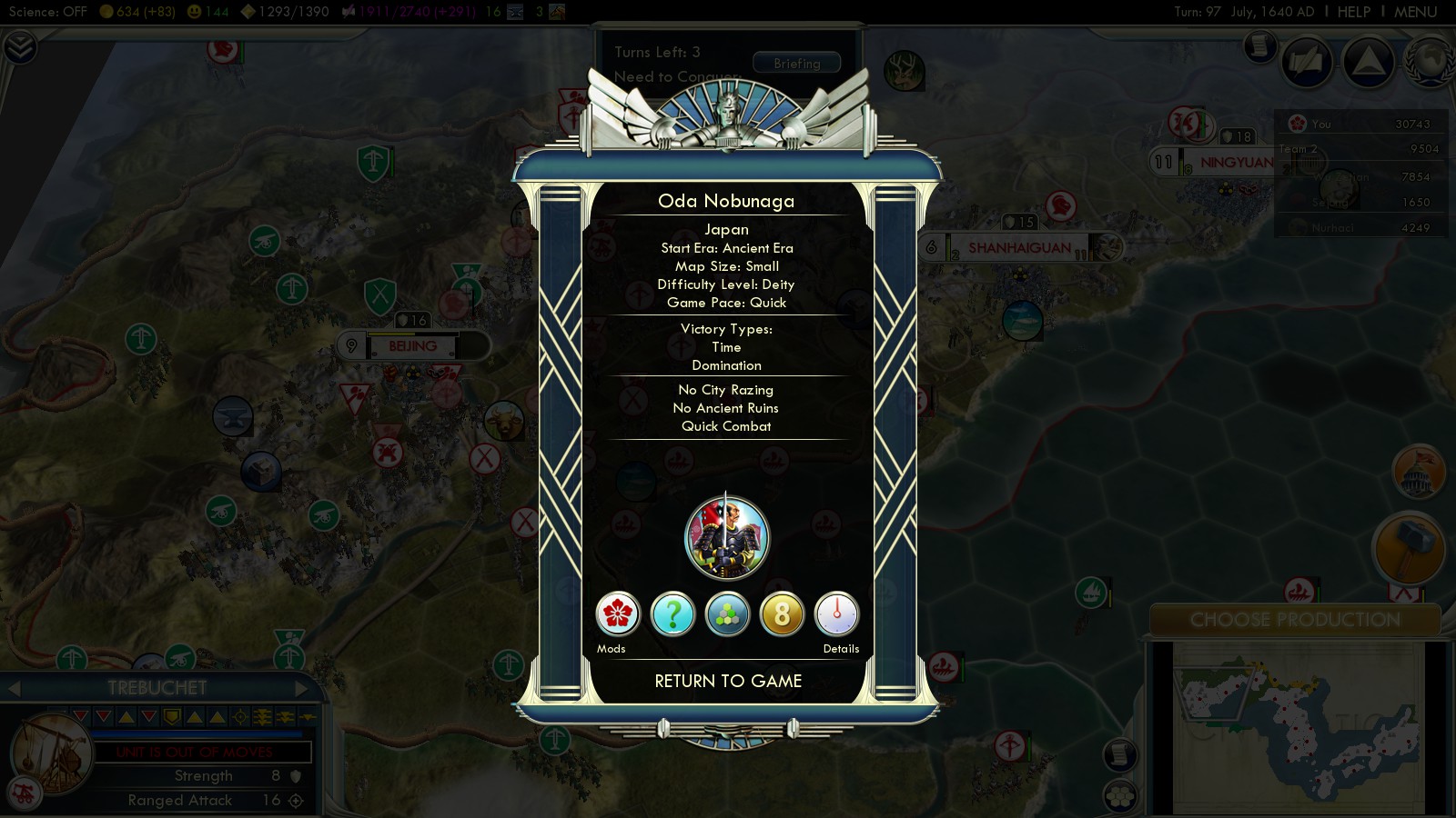 Hi Andy, that’s great to read! I remember that scenario to be sooo challenging on Deity, good god. Nice bug on the Korean righteous army, too. Lucky it didn’t ruin your game! If you ever want to play relaxed and asynchronous multiplayer – visit the GMR community -> 3 Years of Civilization 5 Multiplayer with GMR and an Epic Turnaround
