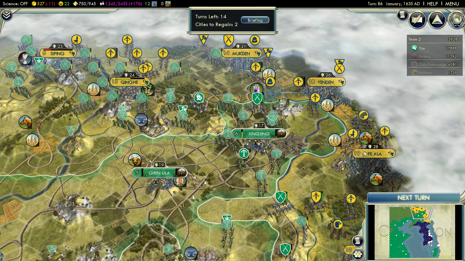 After playing this scenario several more times I realized I could have applied more Honor policies. But either way: Even on Deity, it’s hard to lose this scenario playing as China.