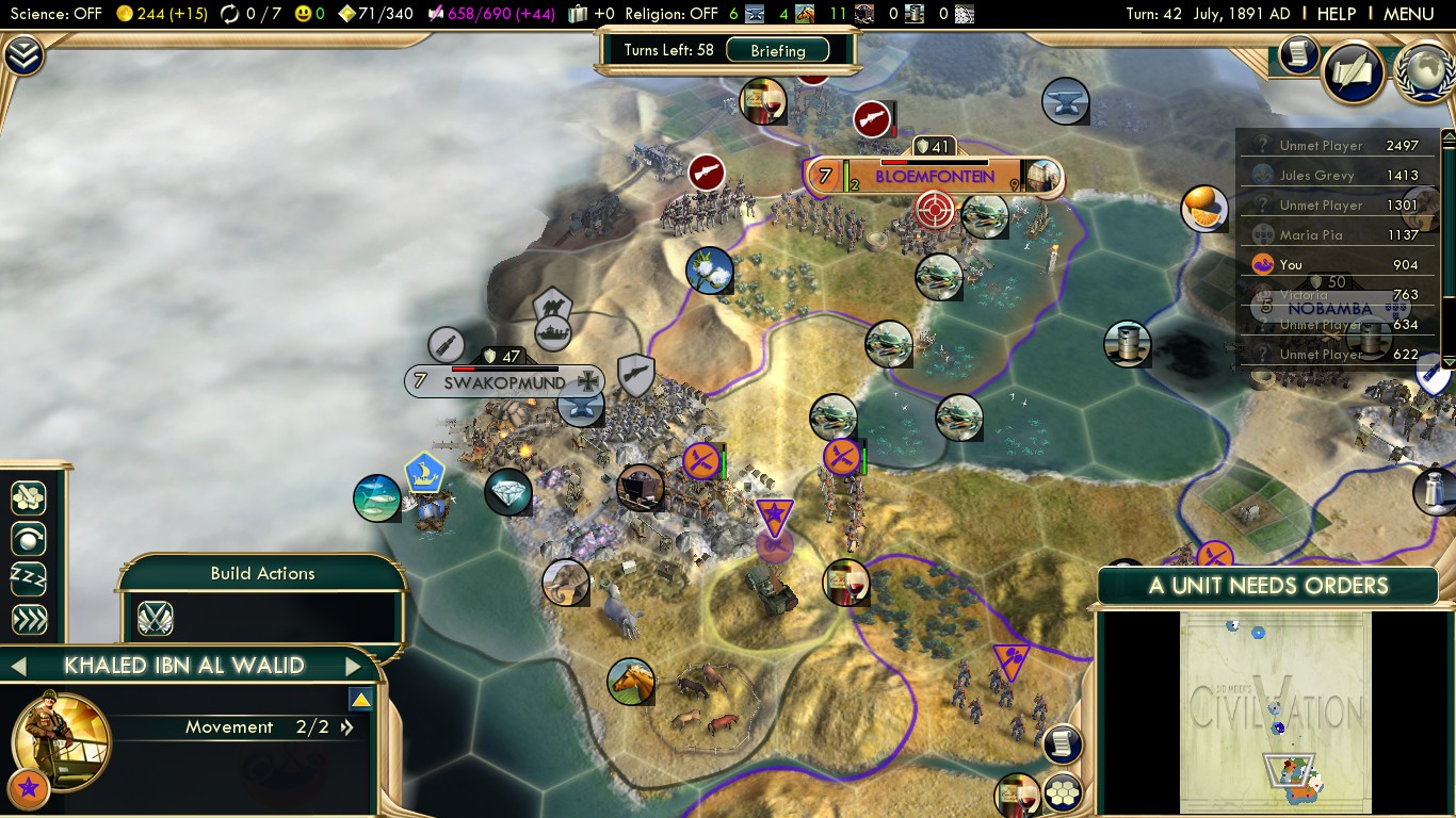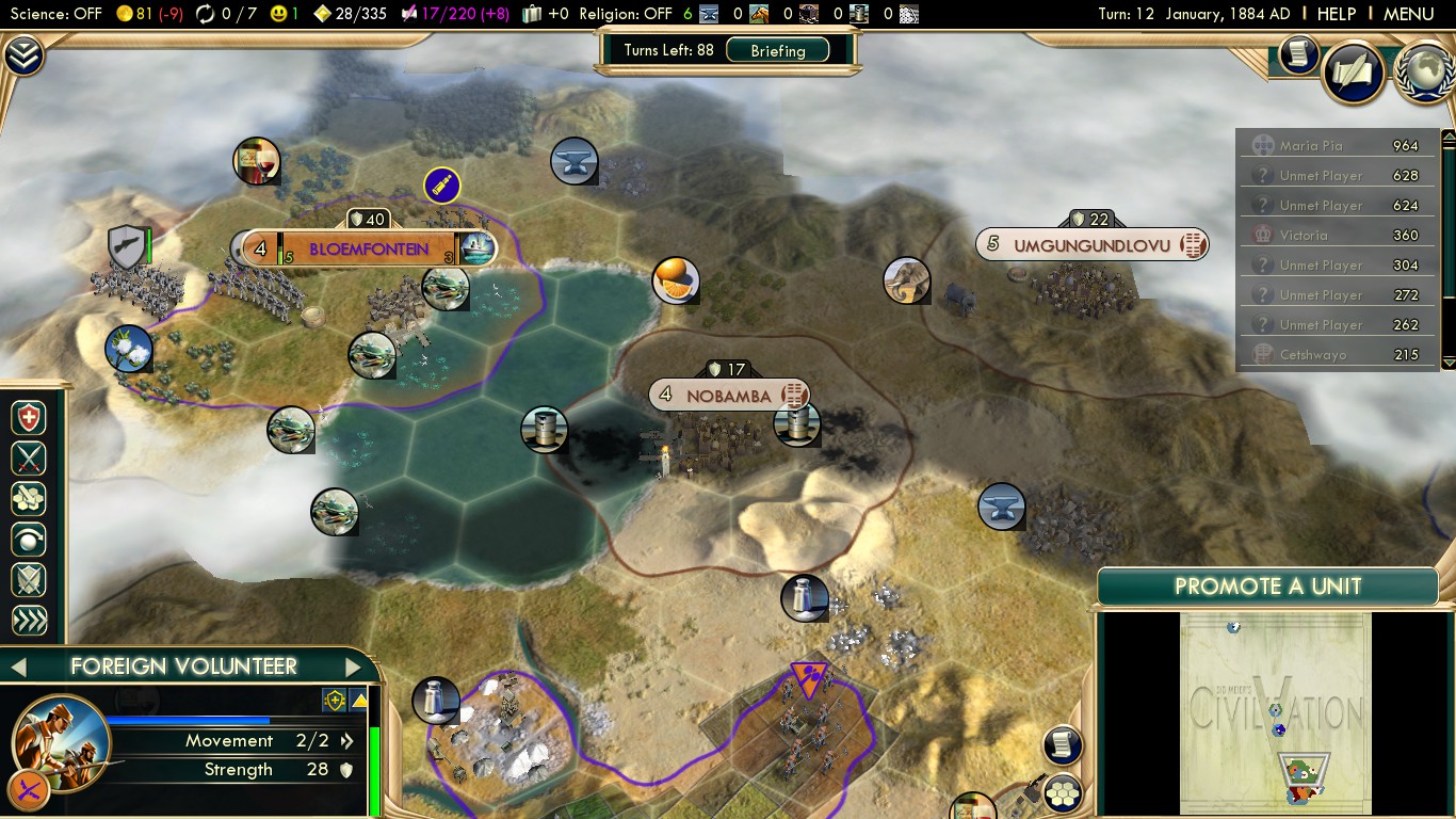 Here’s some remarks on diplomacy with the other European powers when playing the Boers on Deity in Scramble for Africa: